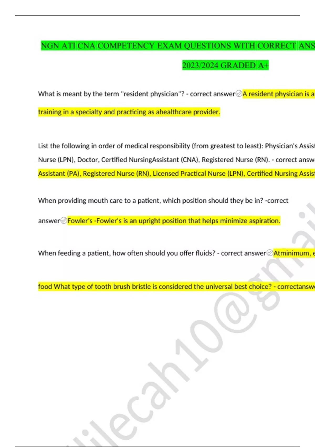 Ngn ati cna competency exam questions with correct answers Latest Update