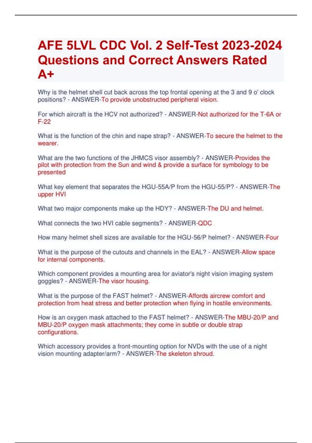 AFE 5LVL CDC Vol. 2 Self-Test Questions and Correct Answers Rated A+