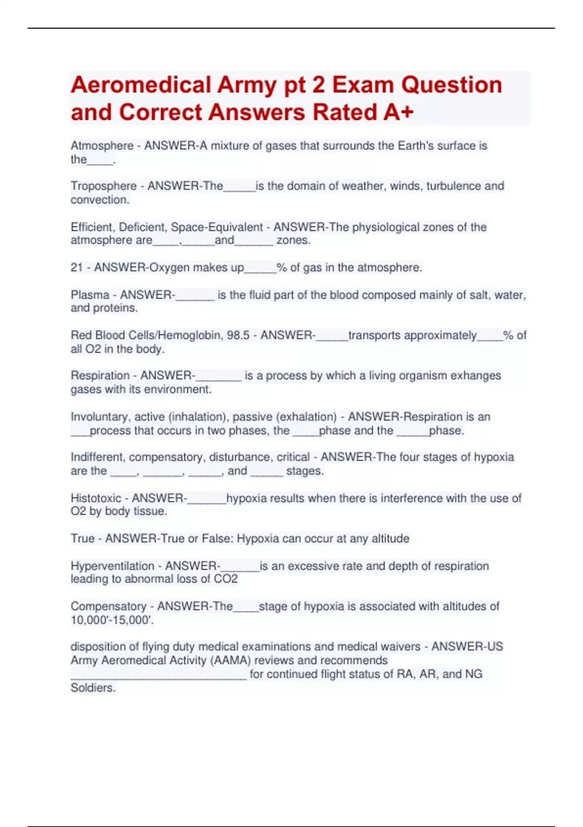 Aeromedical Army pt 2 Exam Question and Correct Answers Rated A+