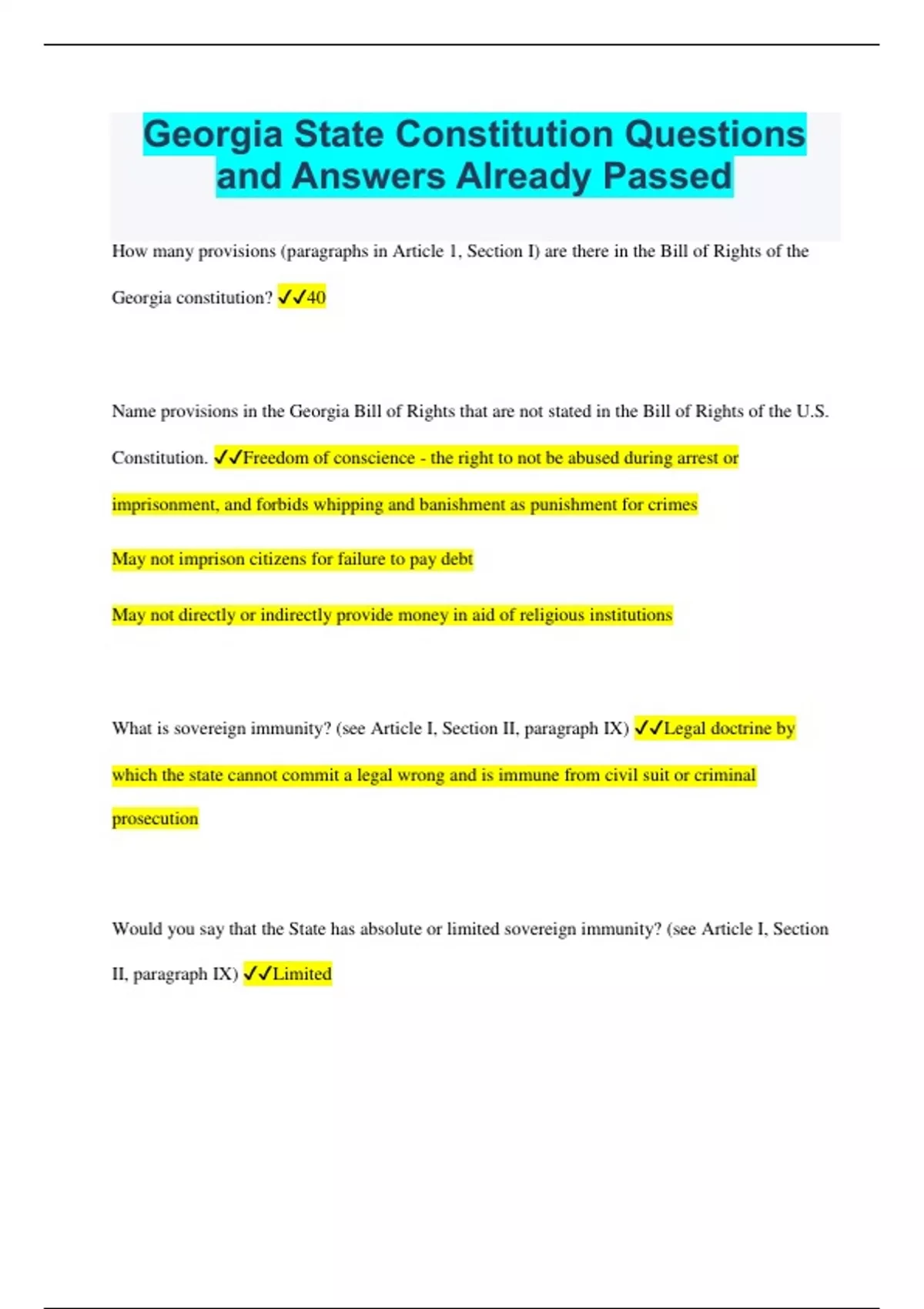 Georgia State Constitution Questions and Answers Already Passed