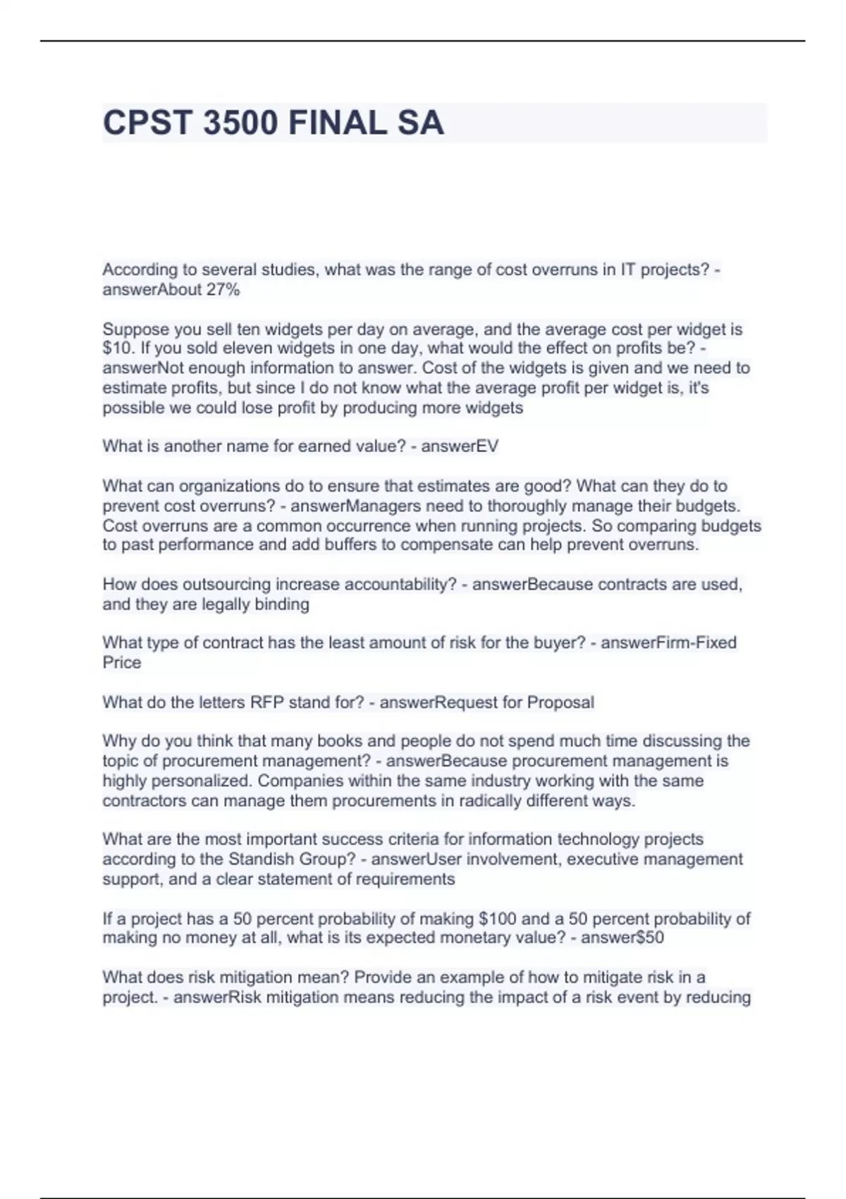 CPST 3500 FINAL SA QUESTIONS AND ANSWERS 100% CORRECT