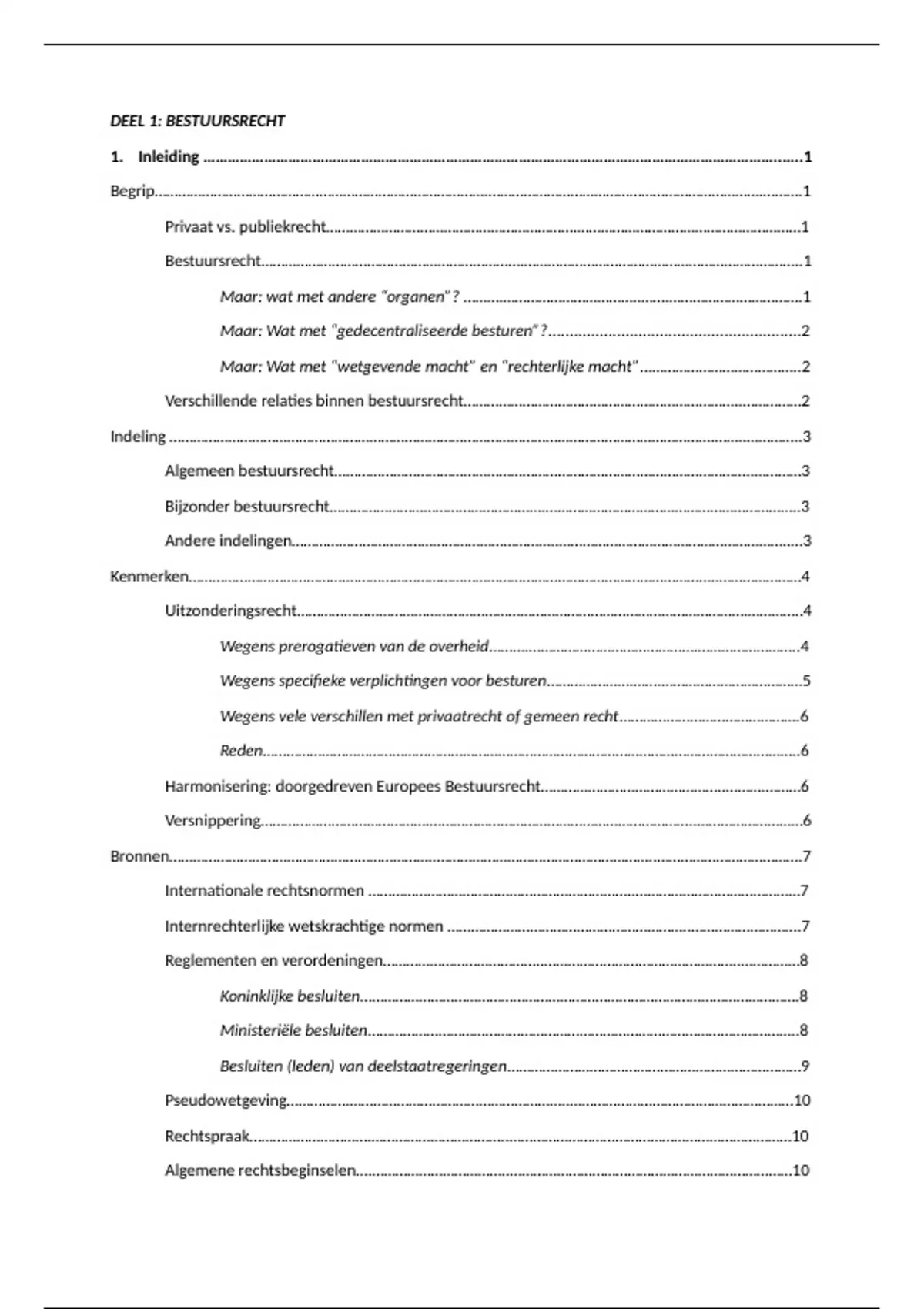 Inhoudstafel bestuursrecht (inleiding bestuursrecht + rechtsbescherming), paginanummers komen overeen met geüploade samenvatting