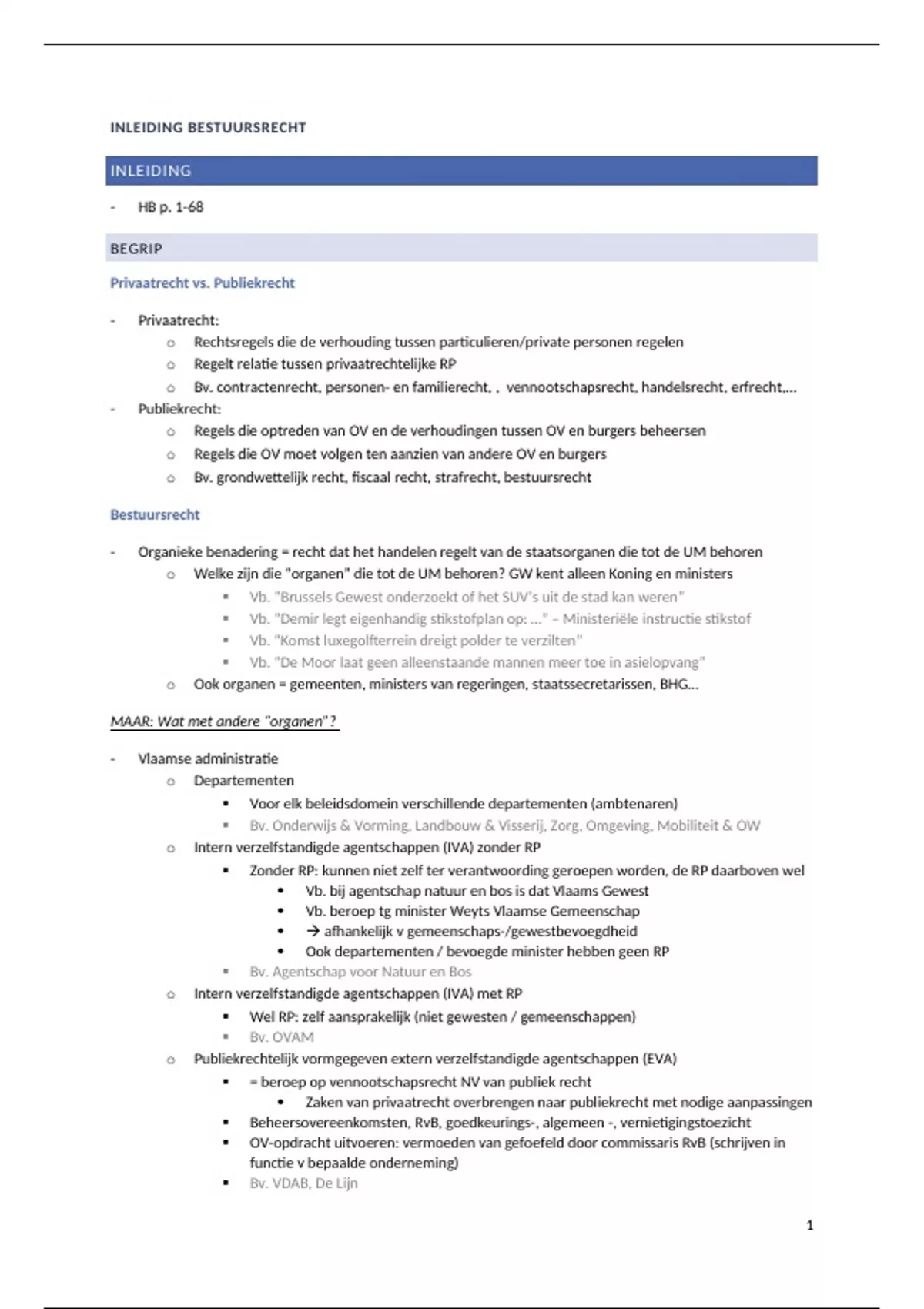 - Wanneer organen van de WM en RM taak van bestuur of uitvoering uitoefenen, handelen = bestuursrecht