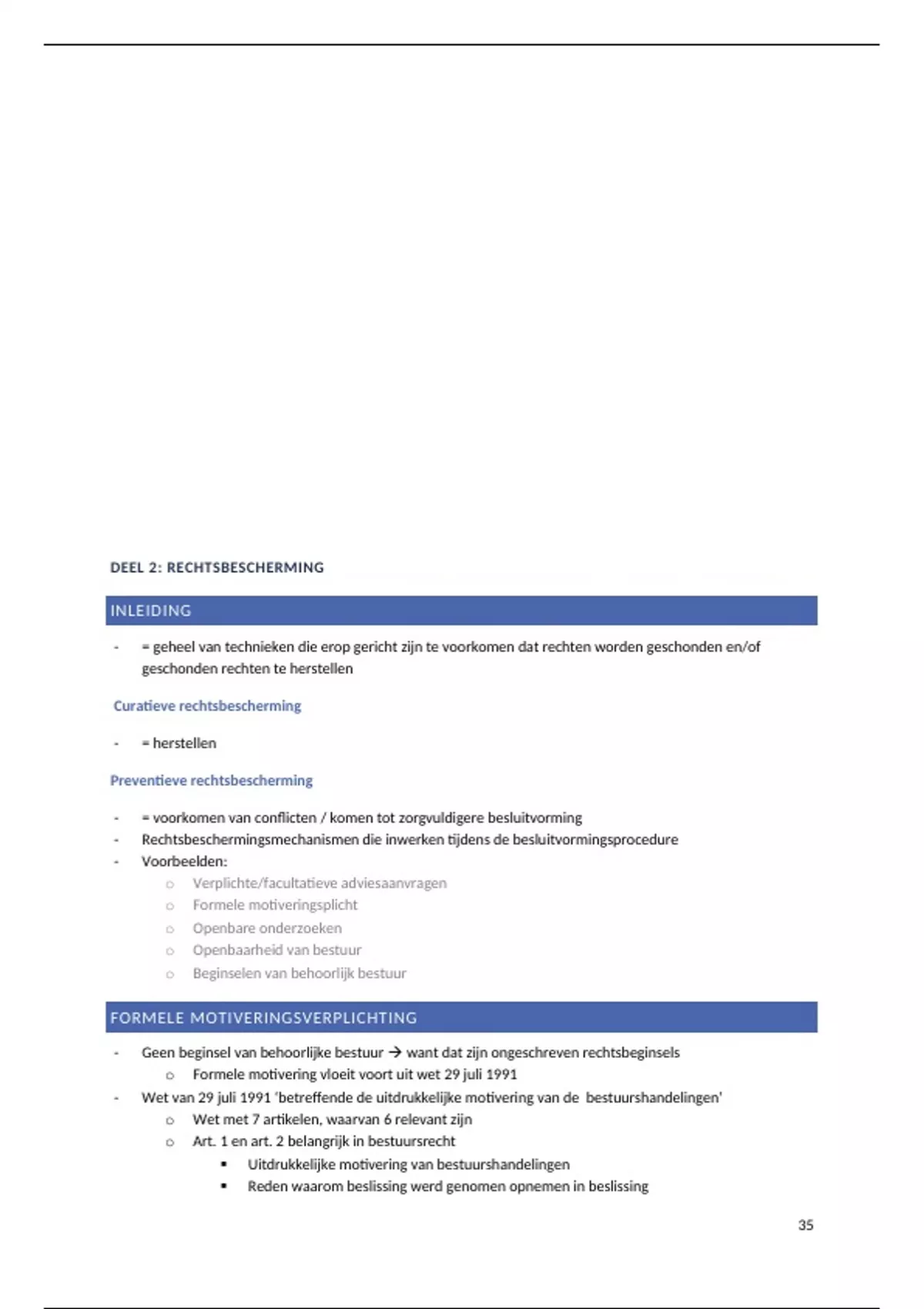 o Formele motivering vloeit voort uit wet 29 juli 1991