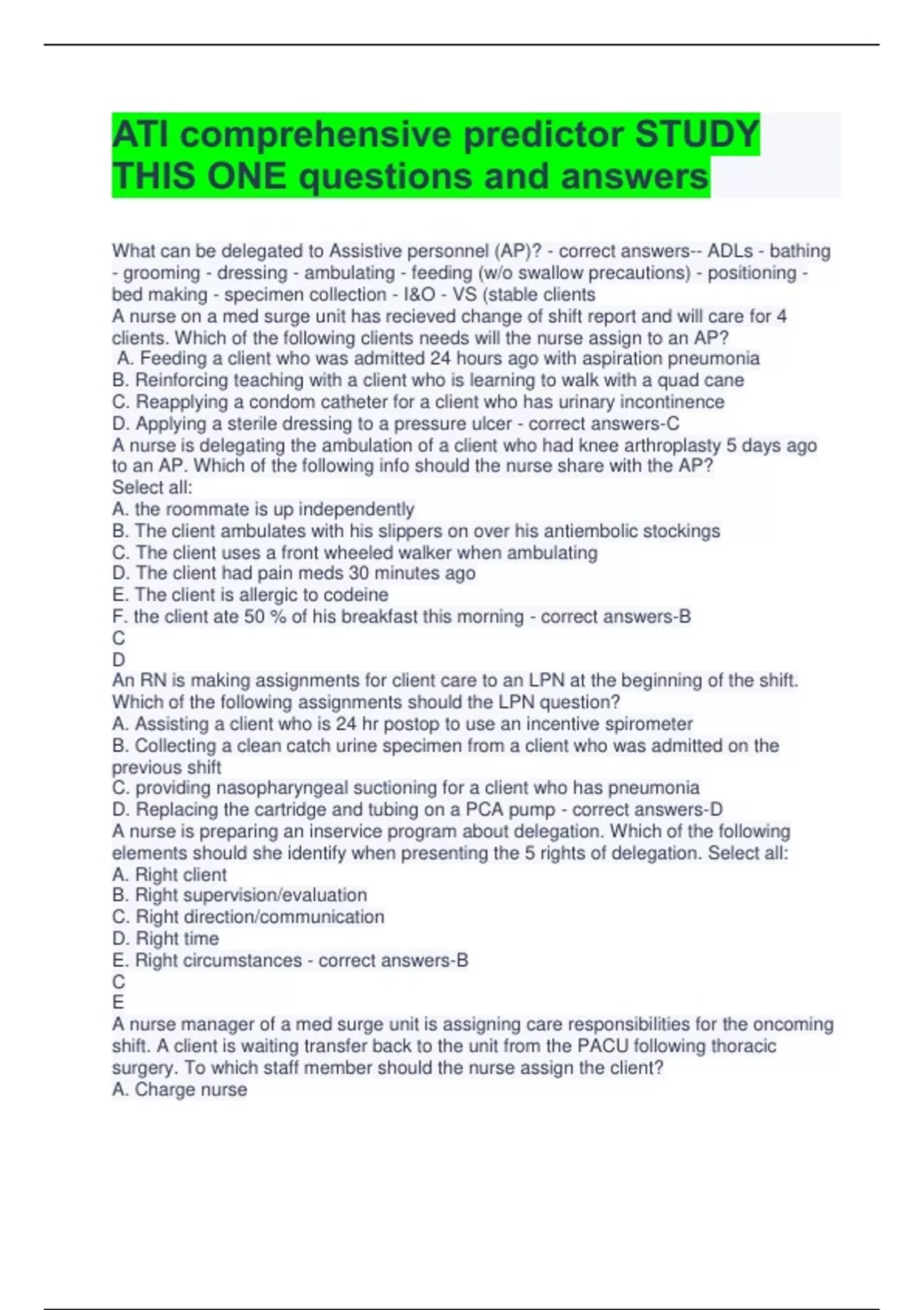 ATI comprehensive predictor STUDY THIS ONE questions and answers