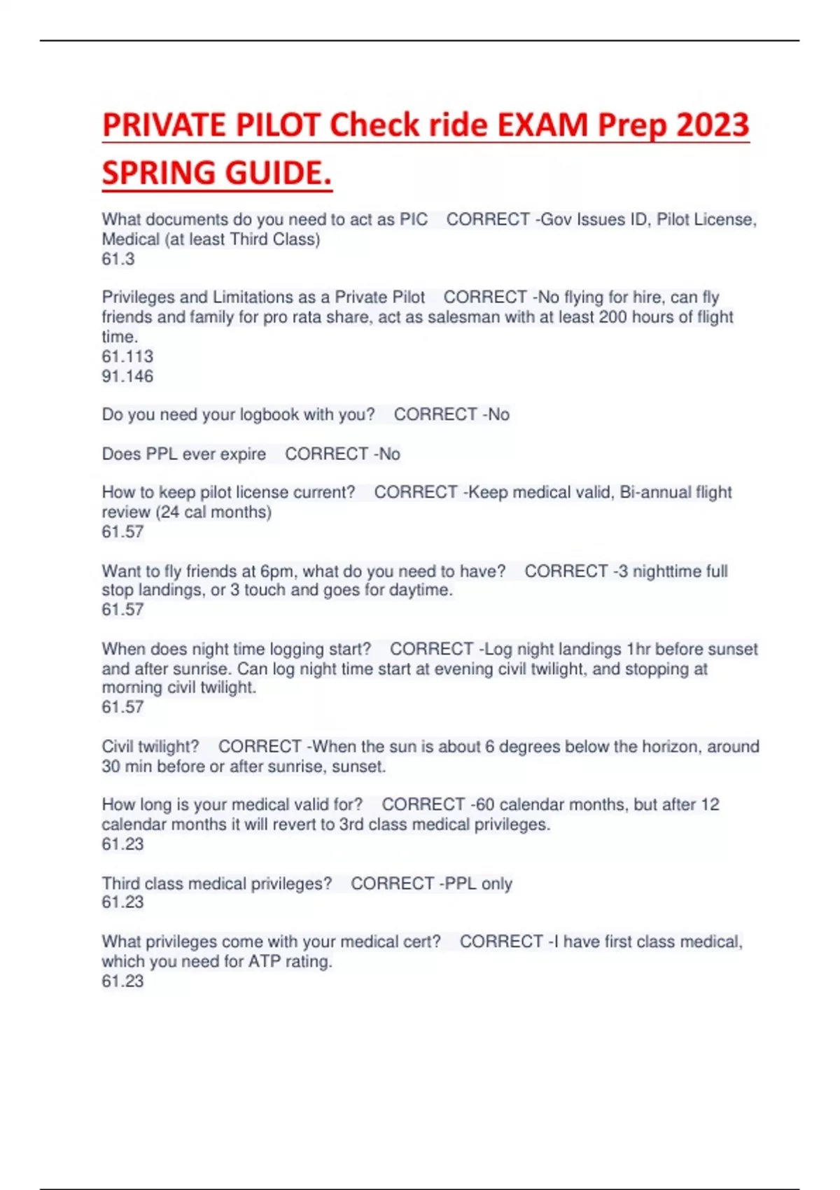 PRIVATE PILOT Check ride EXAM Prep 2023/2024 SPRING GUIDE.
