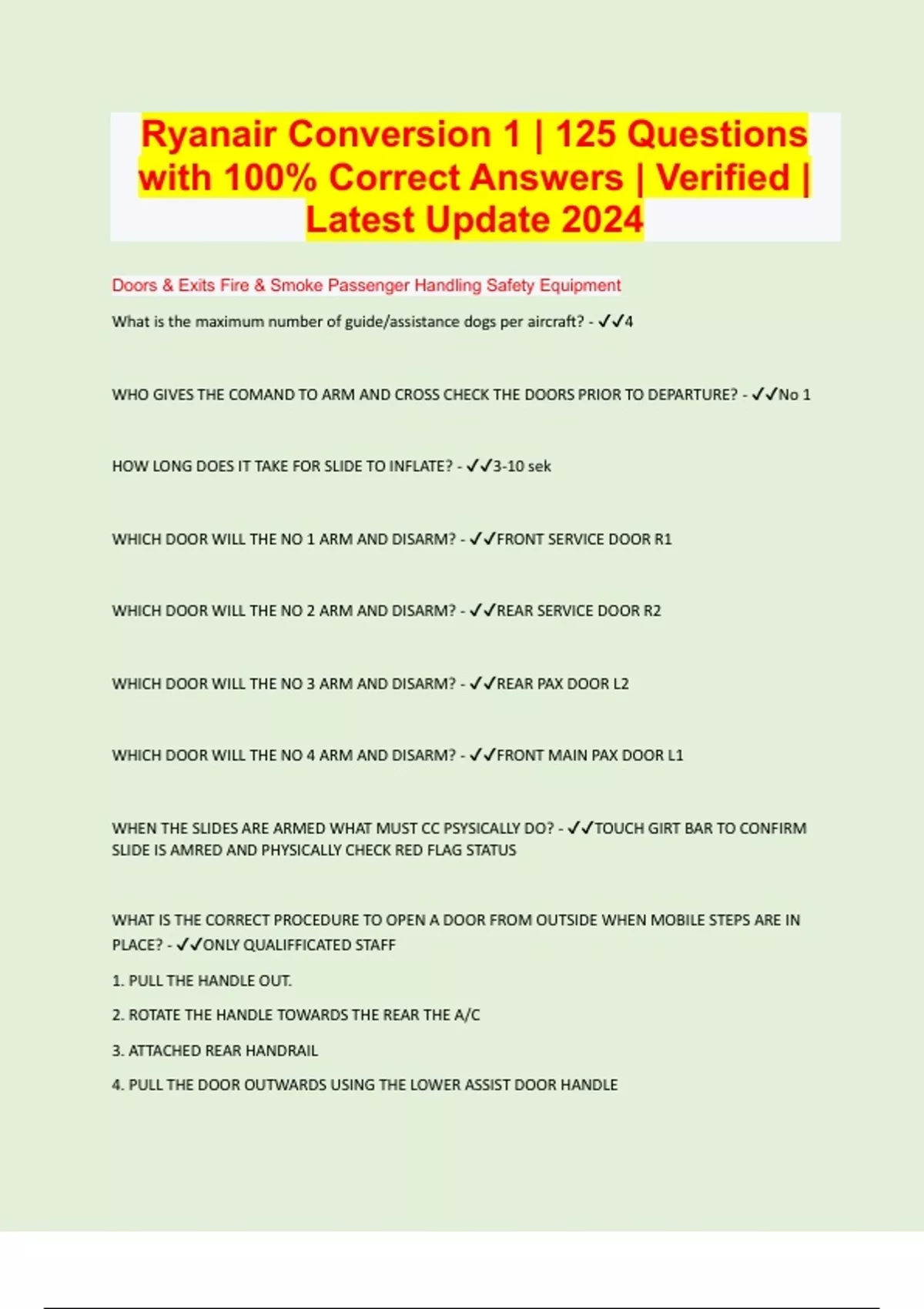Ryanair Conversion 1 | 125 Questions with 100% Correct Answers | Verified | Latest Update 2024