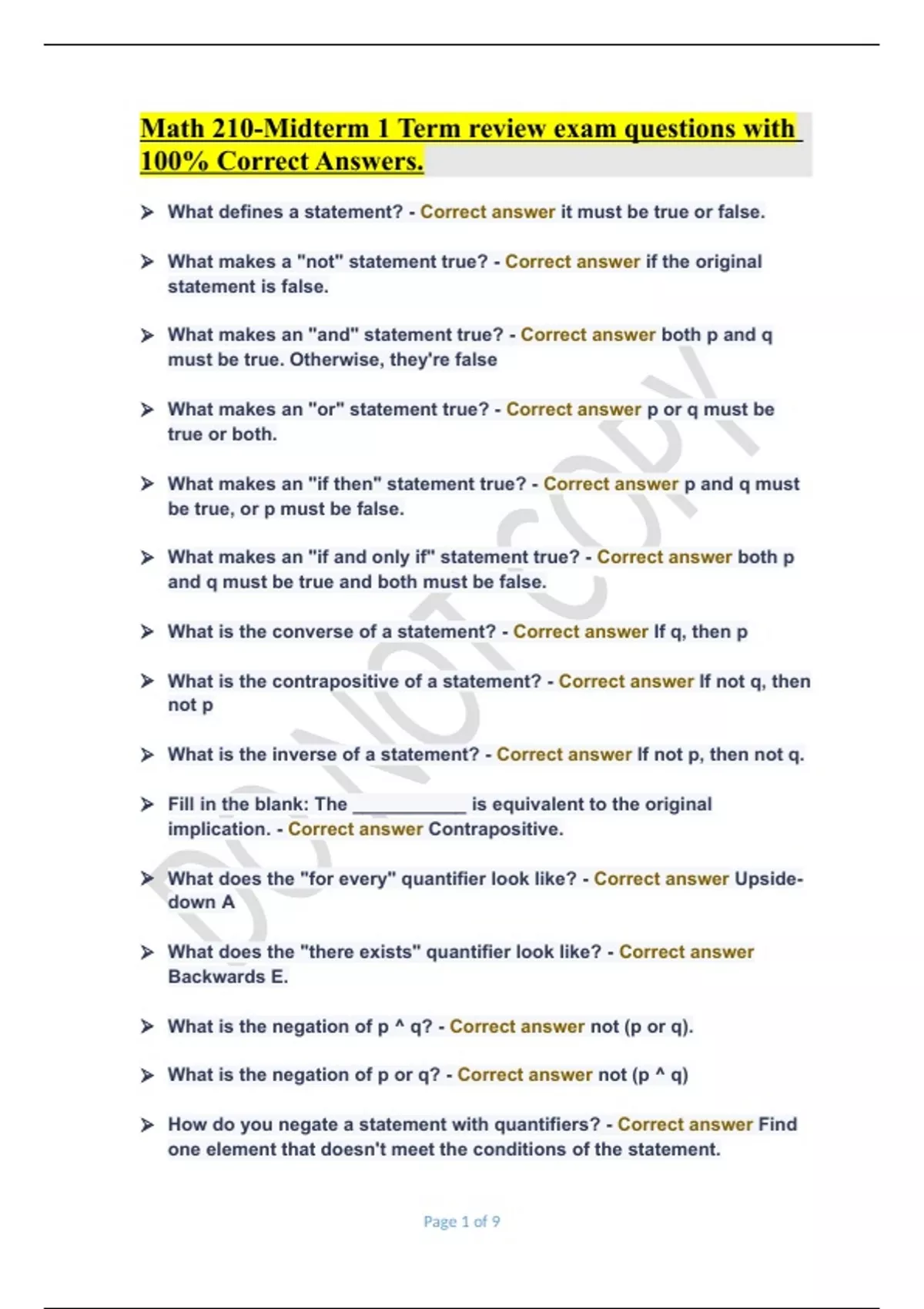 Math 210-Midterm 1 Term review exam questions with 100% Correct Answers..Math 210-Midterm 1 Term review exam questions with 100% Correct Answers..