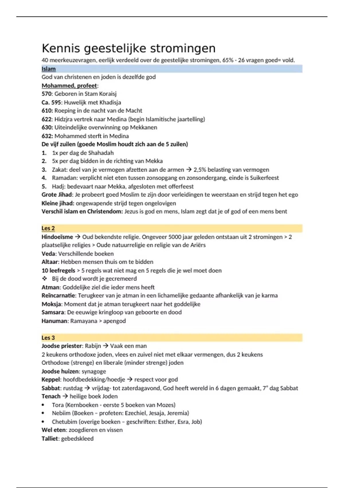 40 meerkeuzevragen, eerlijk verdeeld over de geestelijke stromingen, 65% - 26 vragen goed= vold.