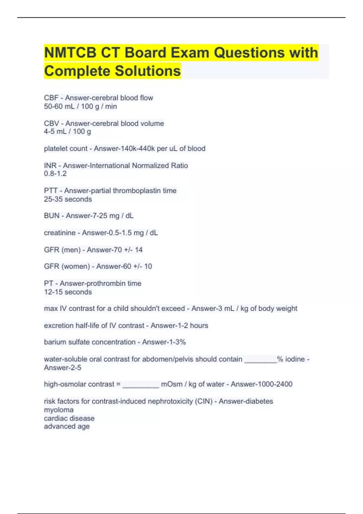 NMTCB CT Board Exam Questions with