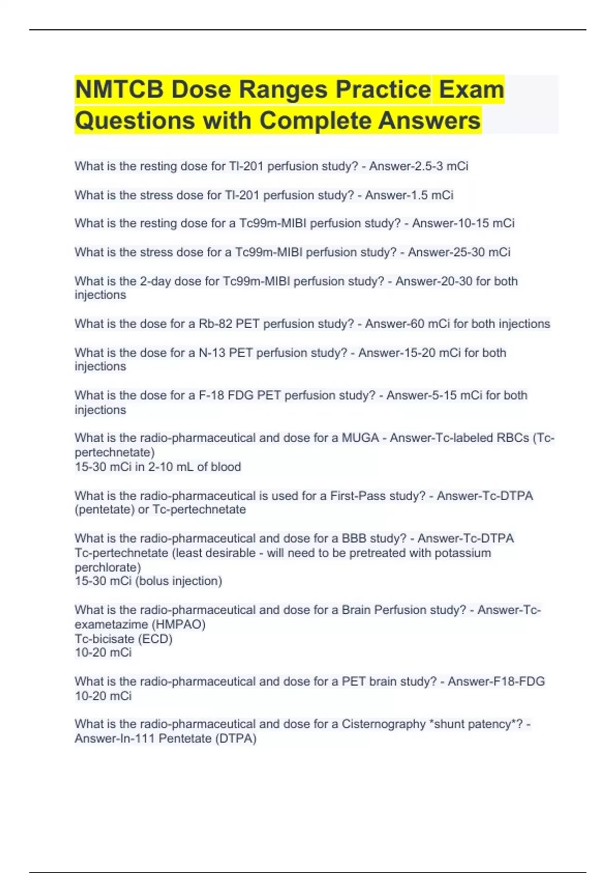 What is the resting dose for a Tc99m-MIBI perfusion study? - Answer-10-15 mCi