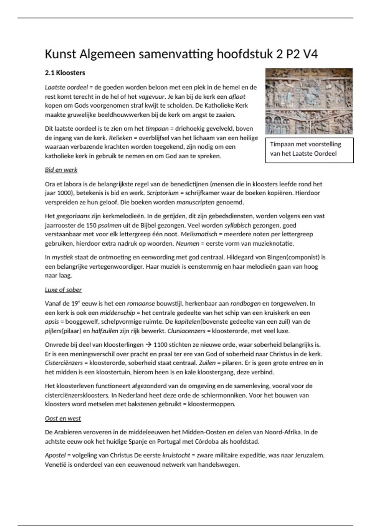 Kunst algemeen samenvatting hoofdstuk 2 met begrippenlijst