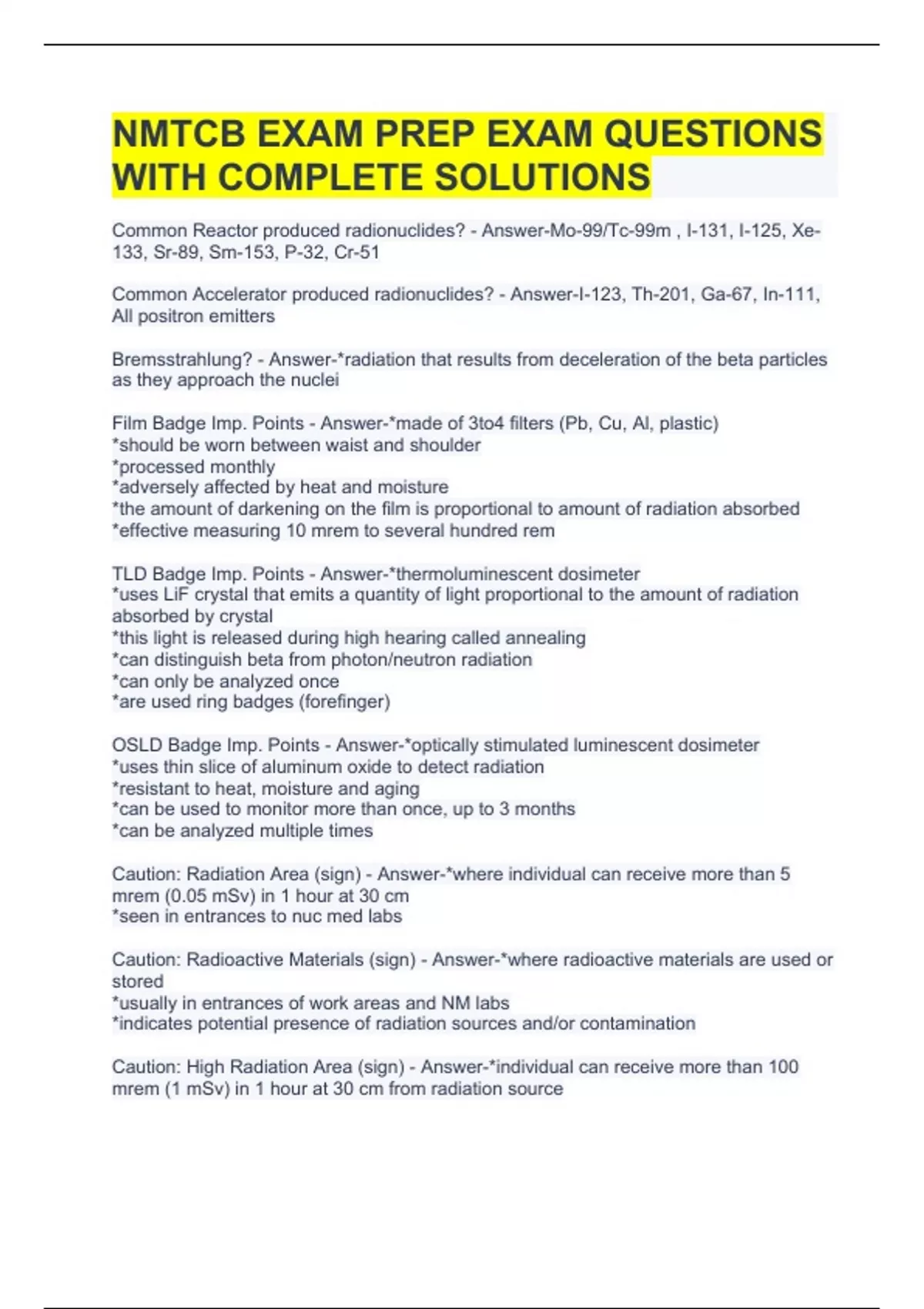 NMTCB EXAM PREP EXAM QUESTIONS WITH COMPLETE SOLUTIONS