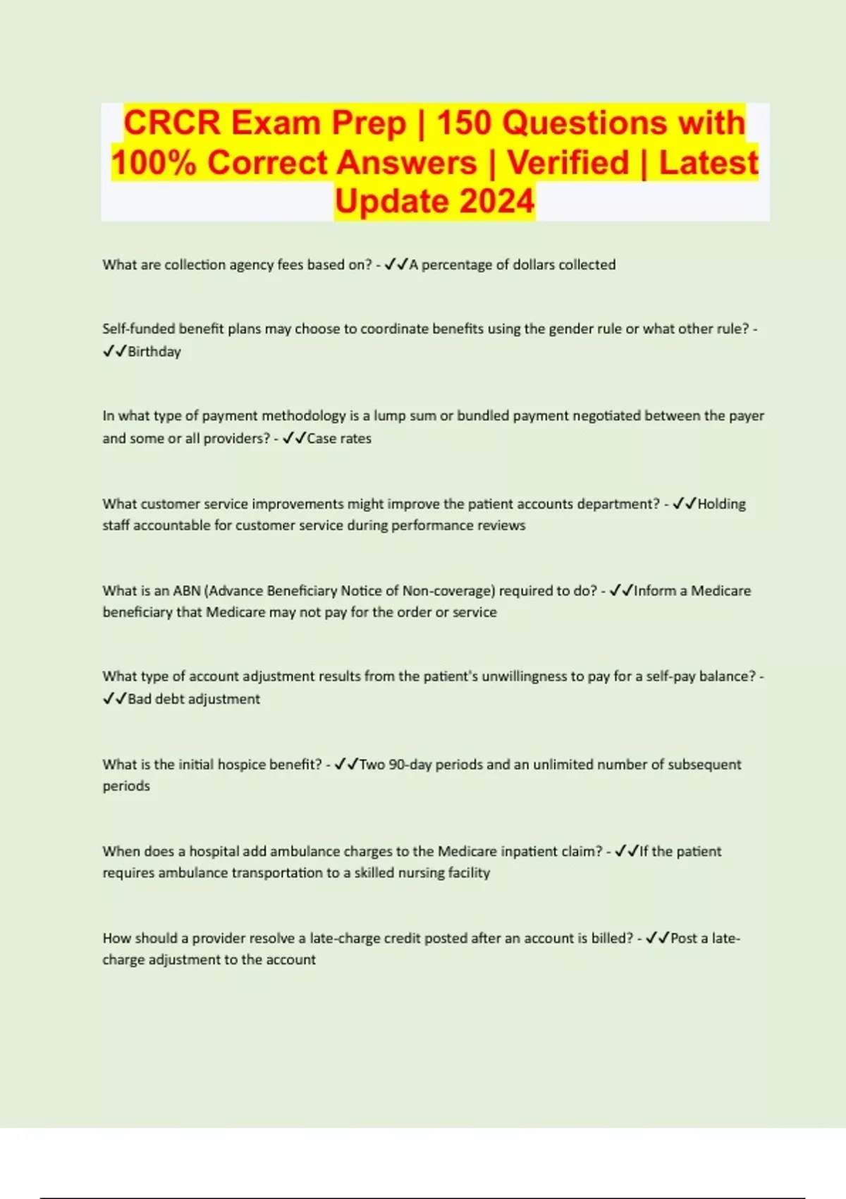 CRCR Exam Prep | 150 Questions with 100% Correct Answers | Verified | Latest Update 2024
