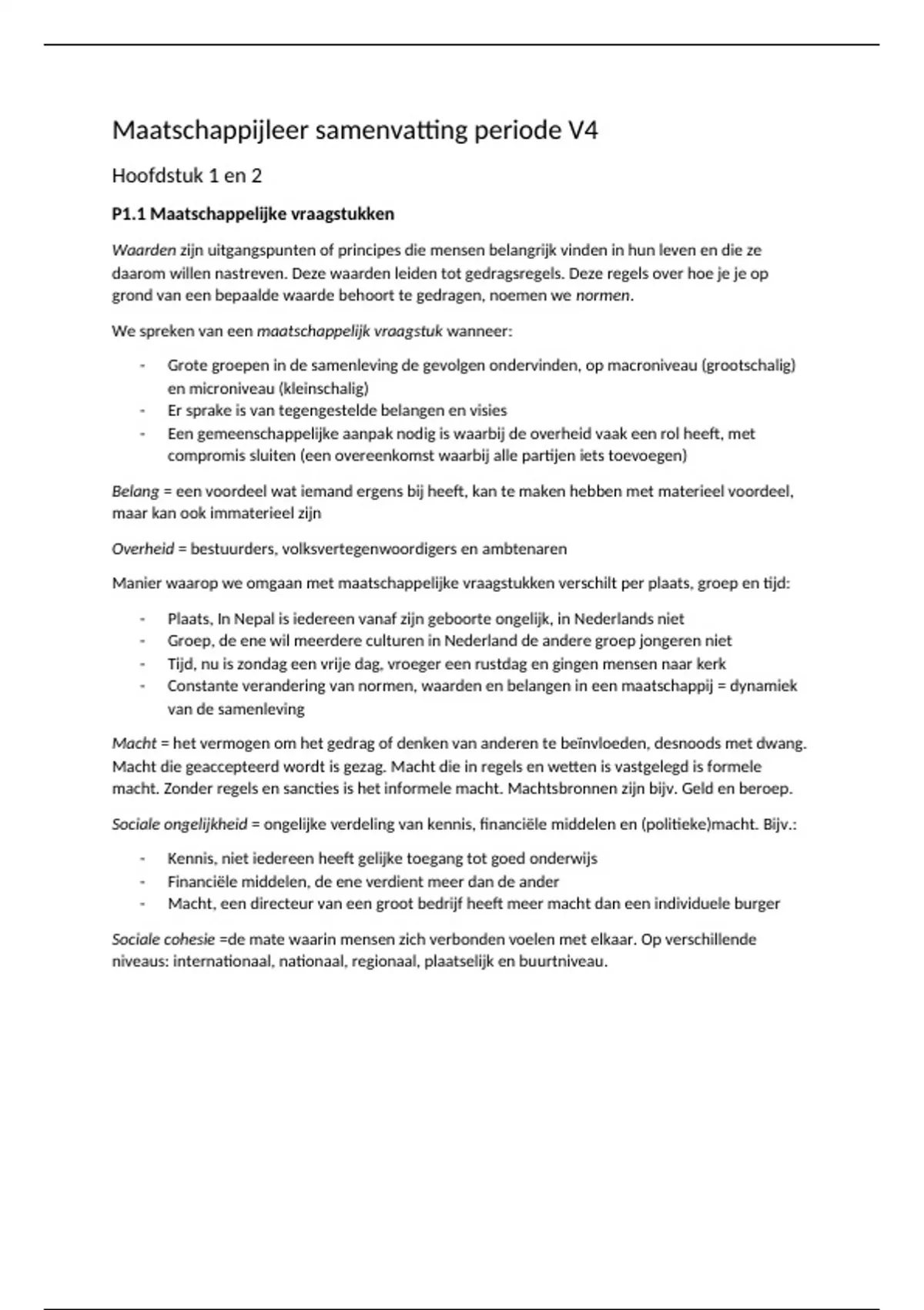 Samenvatting Maatschappijleer hoofdstuk 1 vwo 4