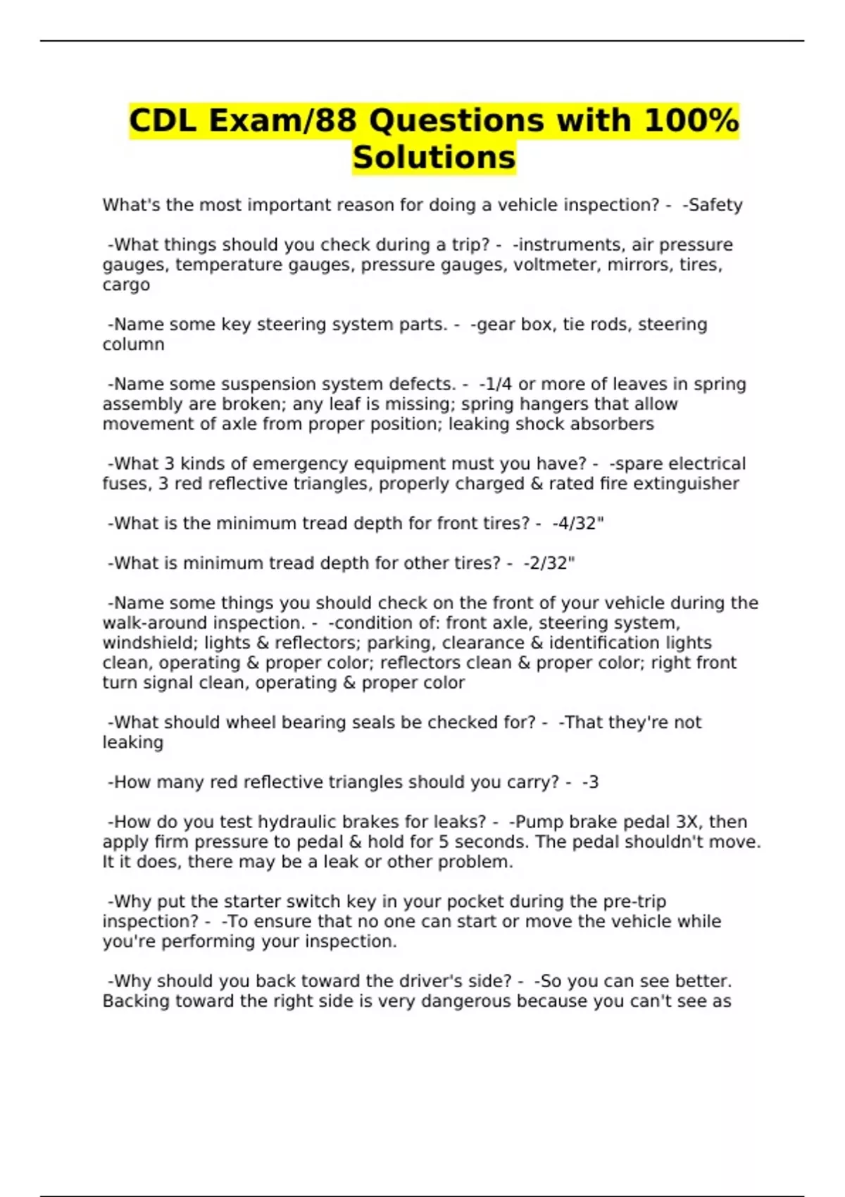 CDL Exam/88 Questions with 100% Solutions