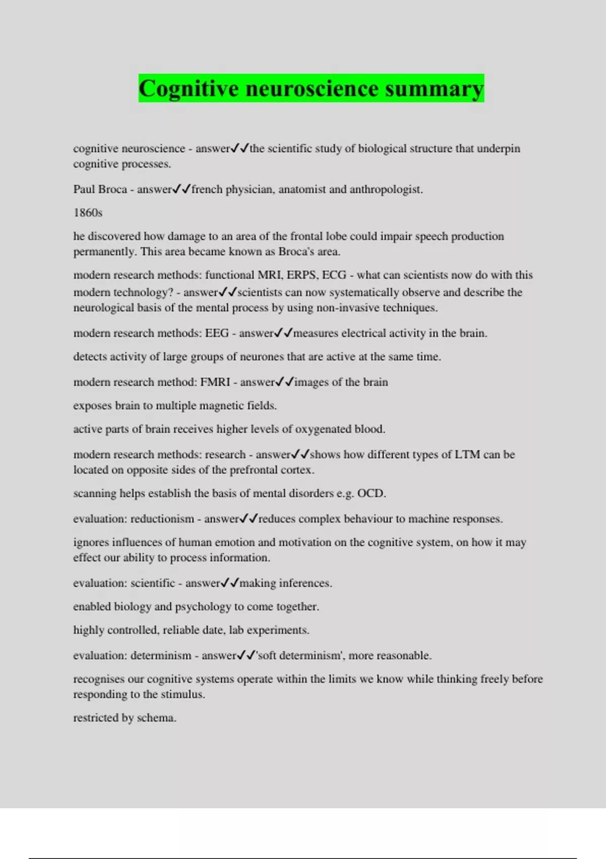 Cognitive neuroscience summary