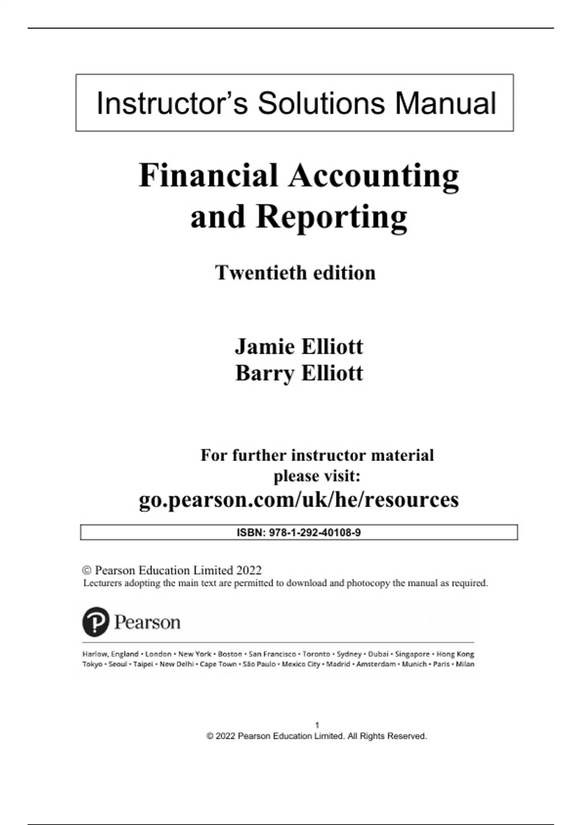 Solution Manual for Financial Accounting and Reporting, 20th Edition by Jamie Elliott, Barry Elliott