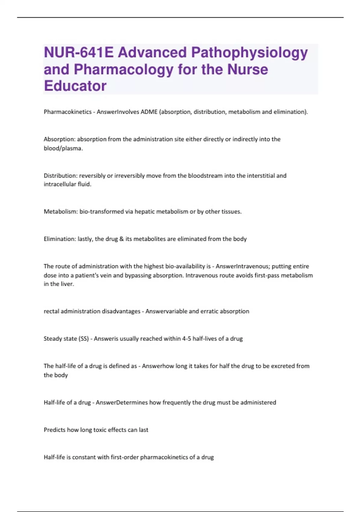 NUR-641E Advanced Pathophysiology and Pharmacology for the Nurse Educator Exam All Possible Questions and Answers with complete solution