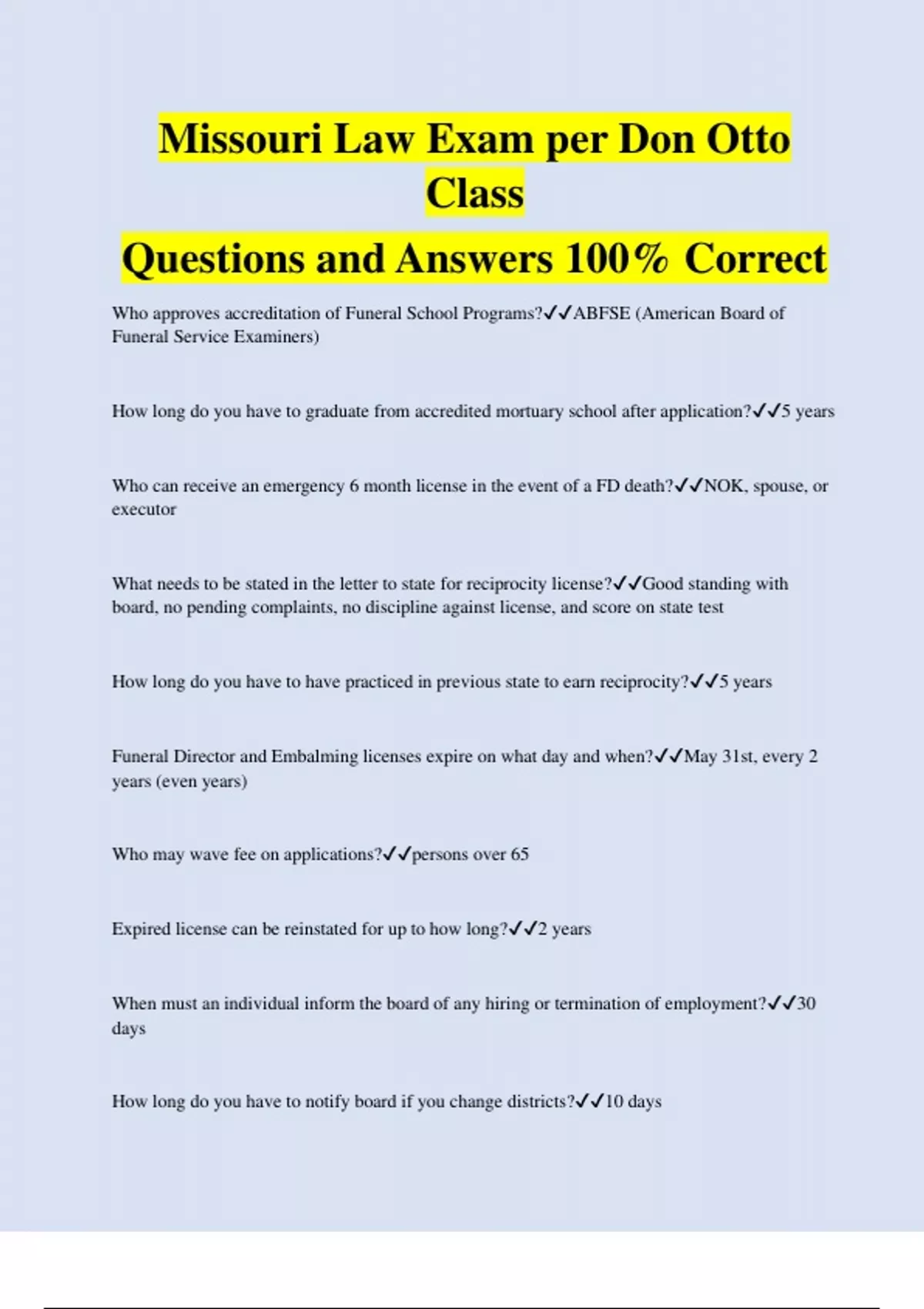 Missouri Law Exam per Don Otto Class Questions and Answers 100% Correct