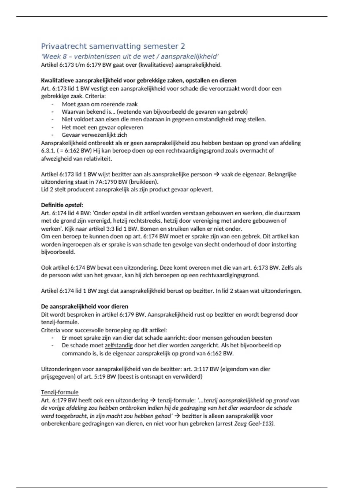 Samenvatting en jurisprudentie semester 2 Privaatrecht B1