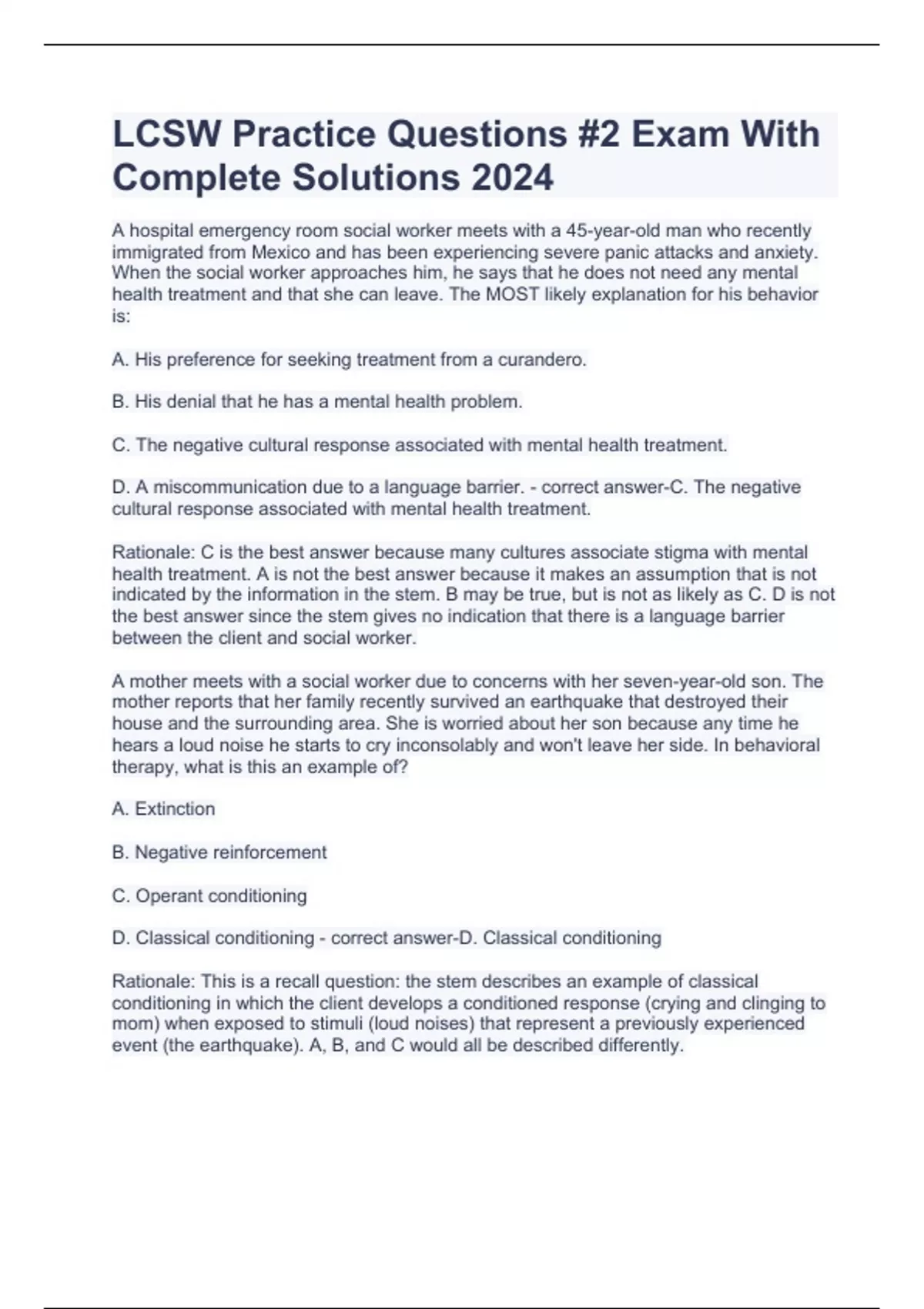 LCSW Practice Questions #2 Exam With Complete Solutions 2024