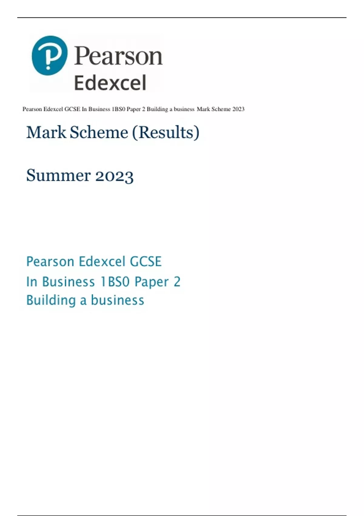 Pearson Edexcel GCSE In Business 1BS0 Paper 2 Building a business Mark Scheme 2023