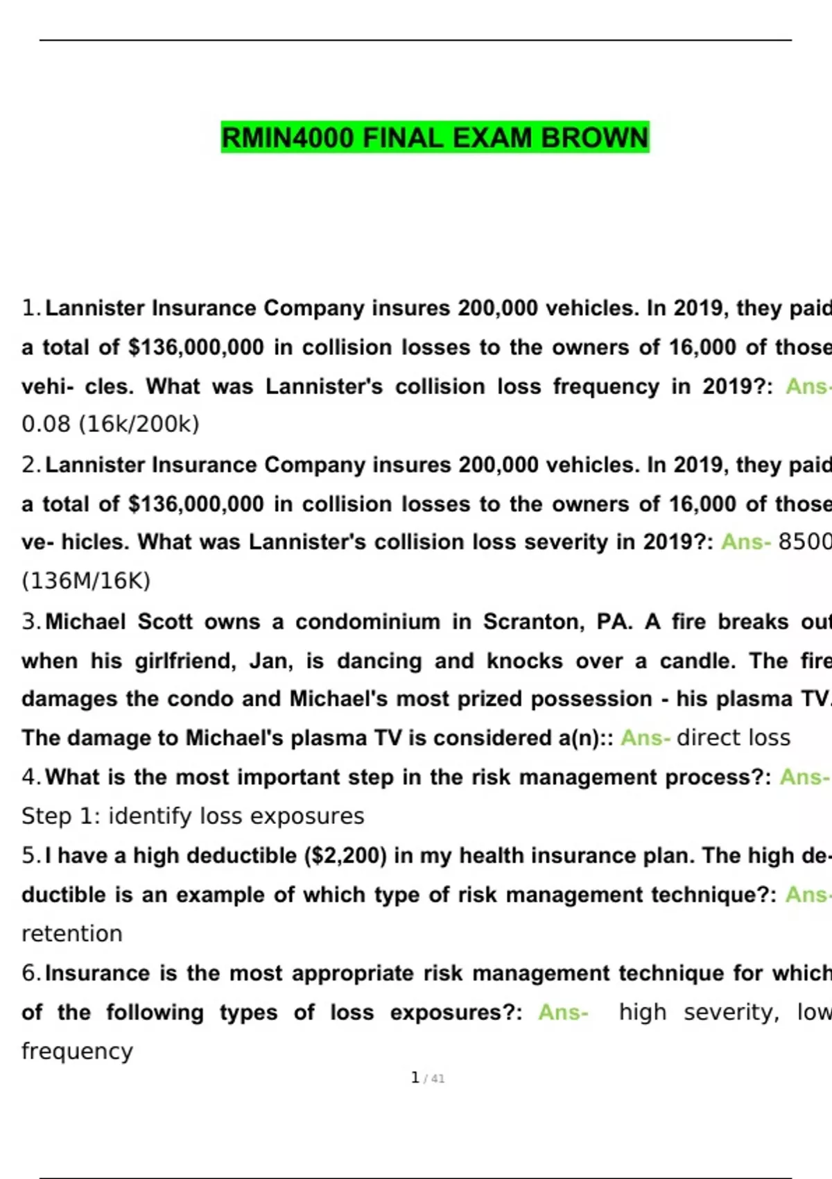 RMIN 4000 FINAL EXAM BROWN UNIVERSITY ACTUAL QUESTIONS AND ANSWERS | VERIFIED COMPLETLY 100% | GRADED A+