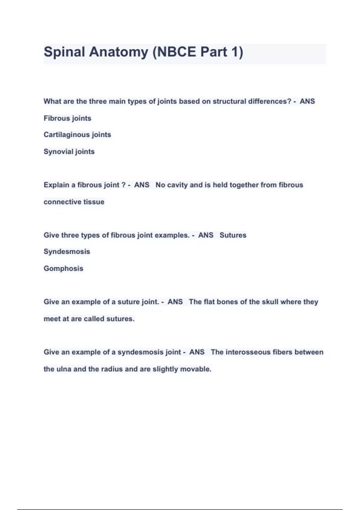 Spinal Anatomy (NBCE Part 1) QUESTIONS & ANSWERS 2024( A+ GRADED 100% VERIFIED)