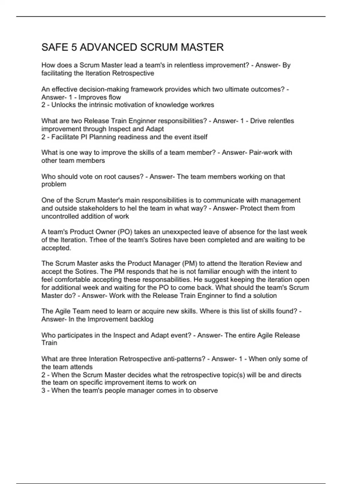 Exam (elaborations) SAFe Scrum Master 5.1 Study Guide 2 Exam (elaborations) SAFe 5.1 Questions and Answers 3 Exam (elaborations) SAFE AGILE ADVANCED SCRUM MASTER EXAM 4 Exam (elaborations) SAFE 5 ADVANCED SCRUM MASTER 5 OTHER SAFE 5.0 ADVANCED SCRUM M