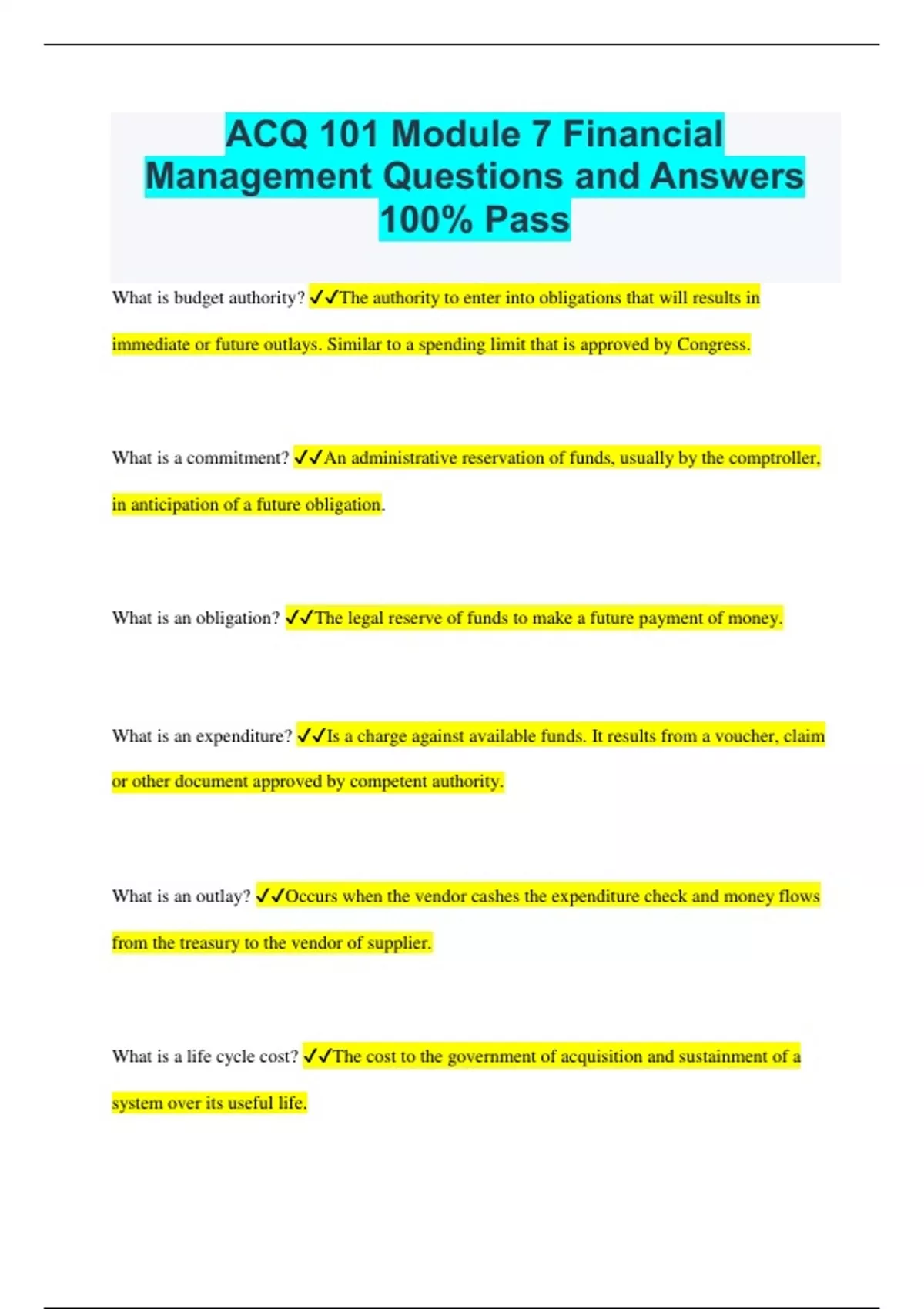 Module 7 Financial Management Questions a
