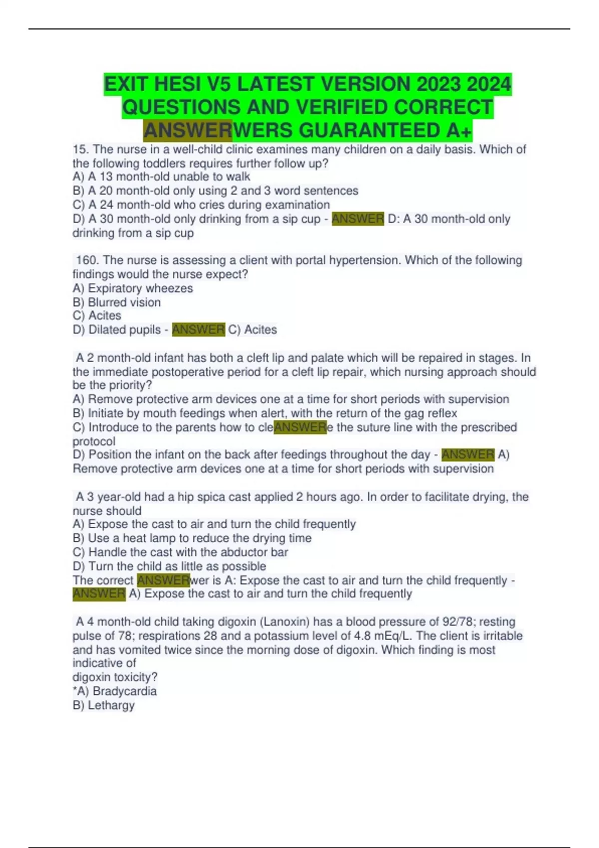 EXIT HESI V5 LATEST VERSION QUESTIONS AND VERIFIED CORRECT ANSWERS GUARANTEED A+