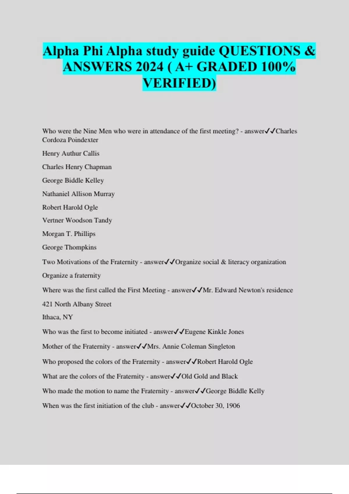 Alpha Phi Alpha study guide QUESTIONS & ANSWERS 2024 ( A+ GRADED 100% VERIFIED)