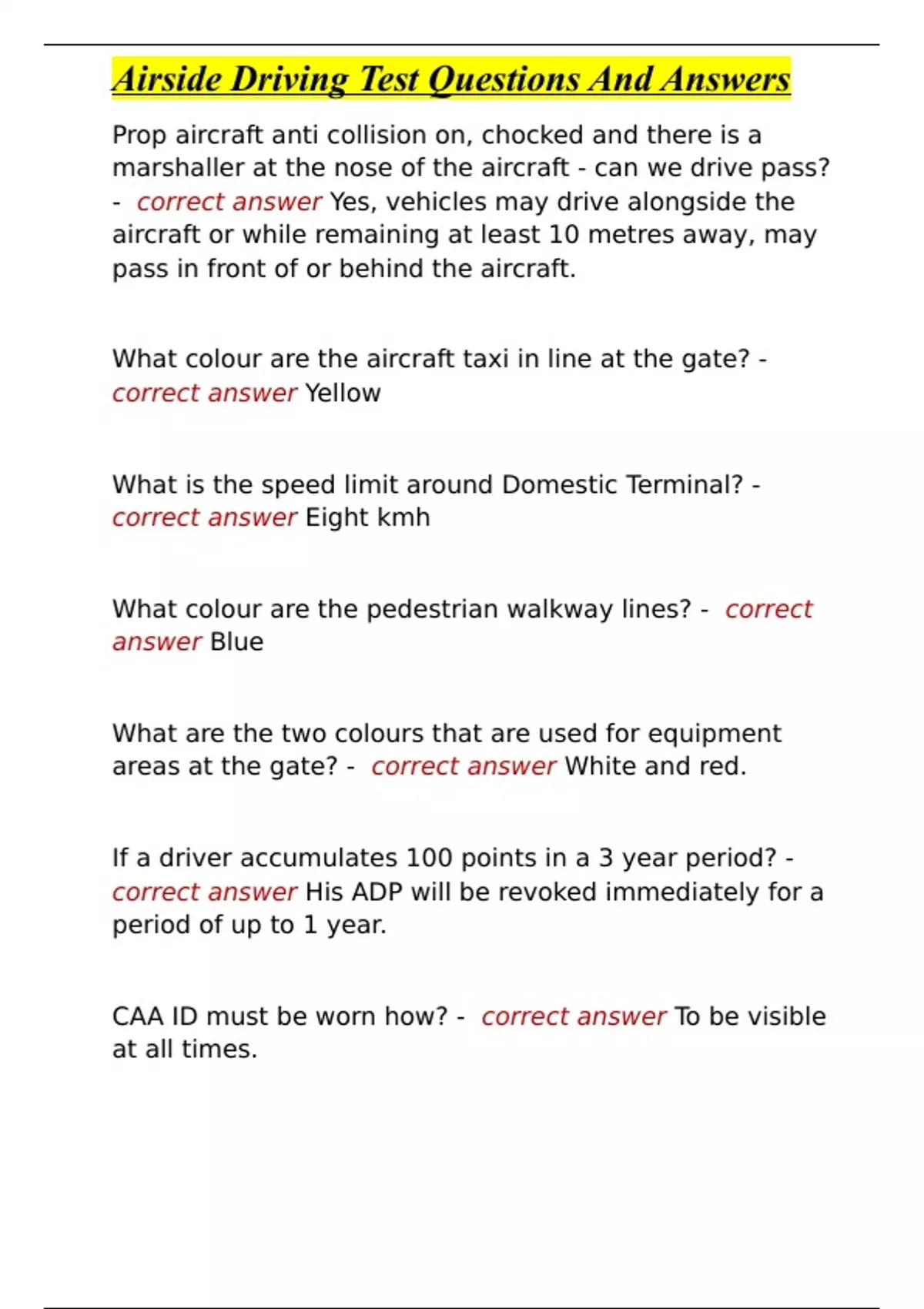 Airside Driving Test Questions And Answers