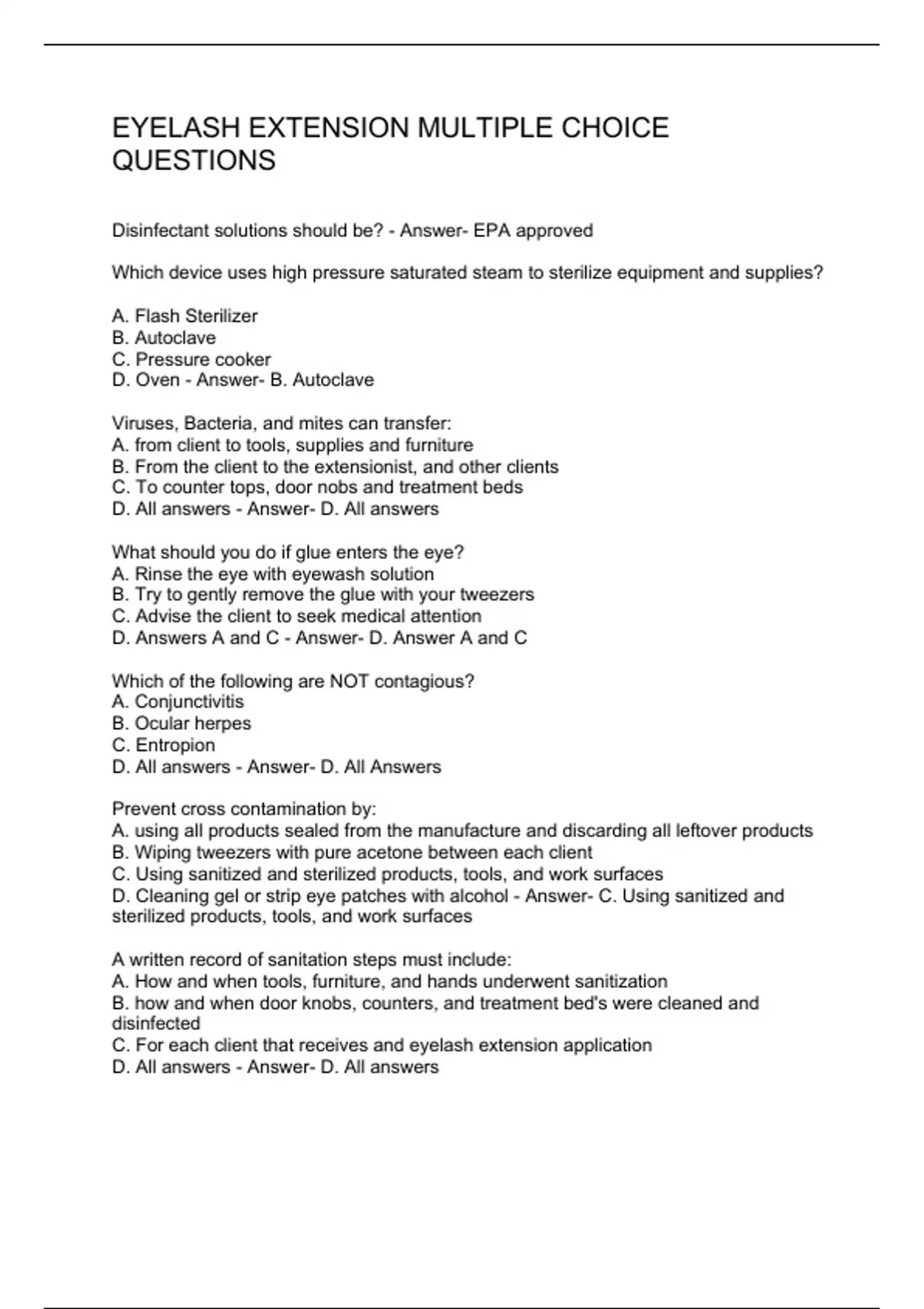 EYELASH EXTENSION MULTIPLE CHOICE QUESTIONS