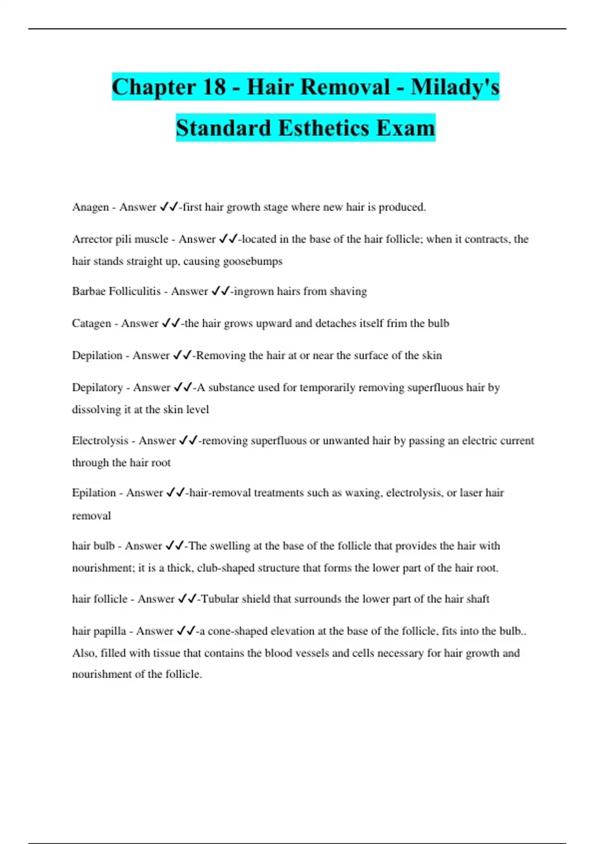 Chapter 18 - Hair Removal - Milady's Standard Esthetics Exam