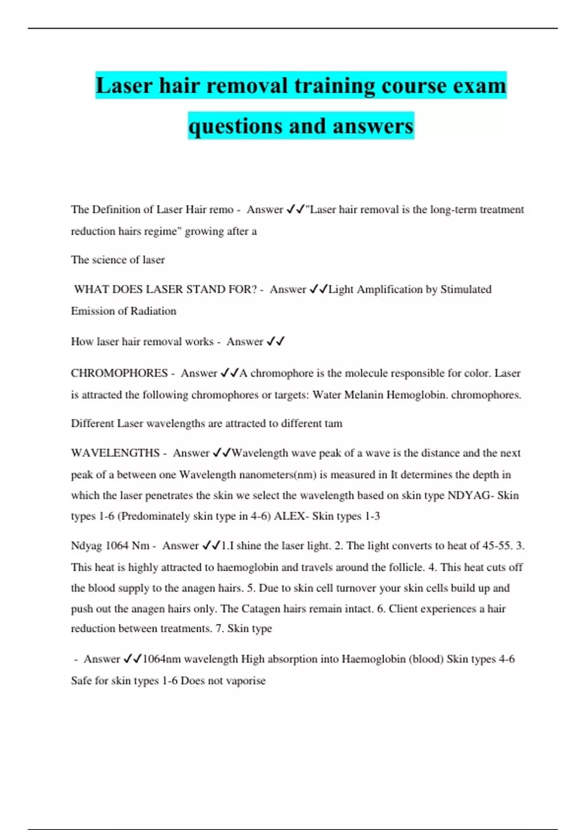 The Definition of Laser Hair removal - Answer ️️"Laser hair removal is the long-term treatment reduction hairs regime" growing after a The science of laser WHAT DOES LASER STAND FOR? - Answer ️️Light Amplification by Stimulated Emission of Radiation
