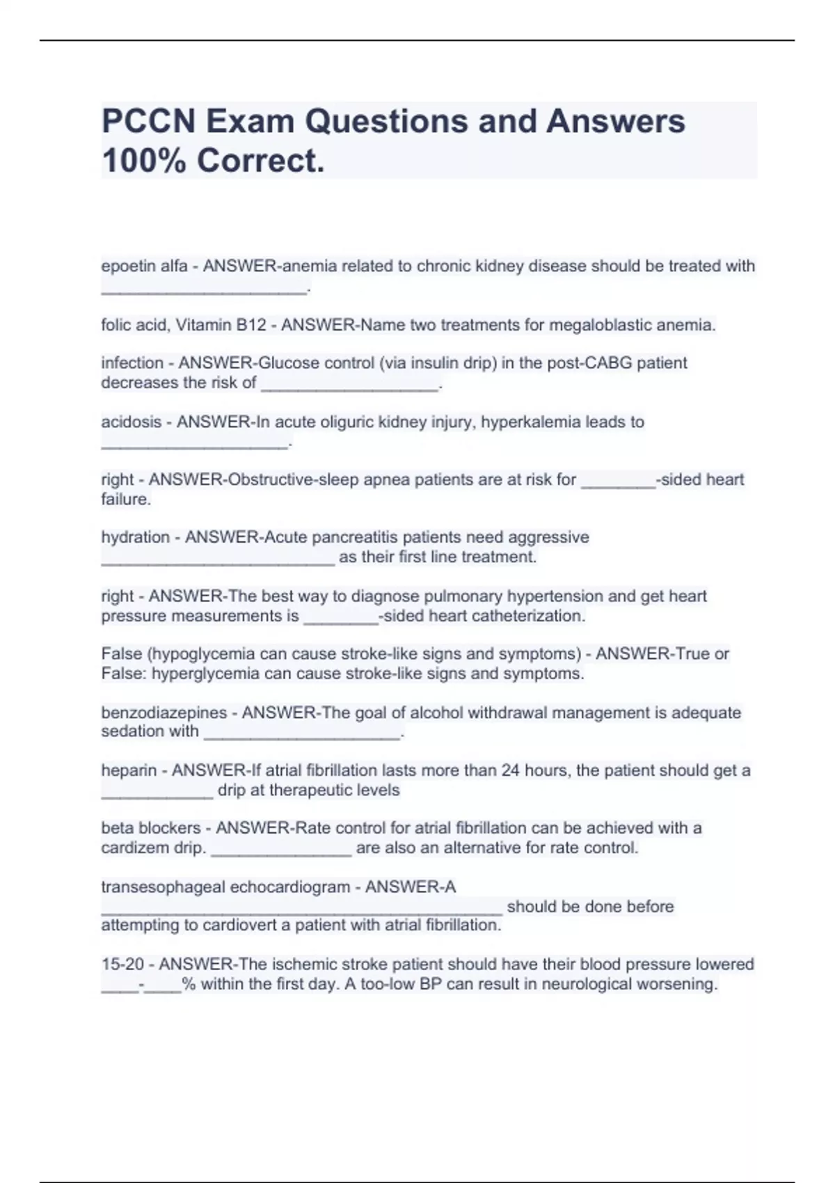 PCCN Exam Questions and Answers 100% Correct.PCCN Exam Questions and Answers 100% Correct.PCCN Exam Questions and Answers 100% Correct.PCCN Exam Questions and Answers 100% Correct.PCCN Exam Questions and Answers 100% Correct.PCCN Exam Questions and Answers 100% Correct.PCCN Exam Questions and Answers 100% Correct.PCCN Exam Questions and Answers 100% Correct.PCCN Exam Questions and Answers 100% Correct.PCCN Exam Questions and Answers 100% Correct.PCCN Exam Questions and Answers 100% Correct.PCCN Exam Questions and Answers 100% Correct.