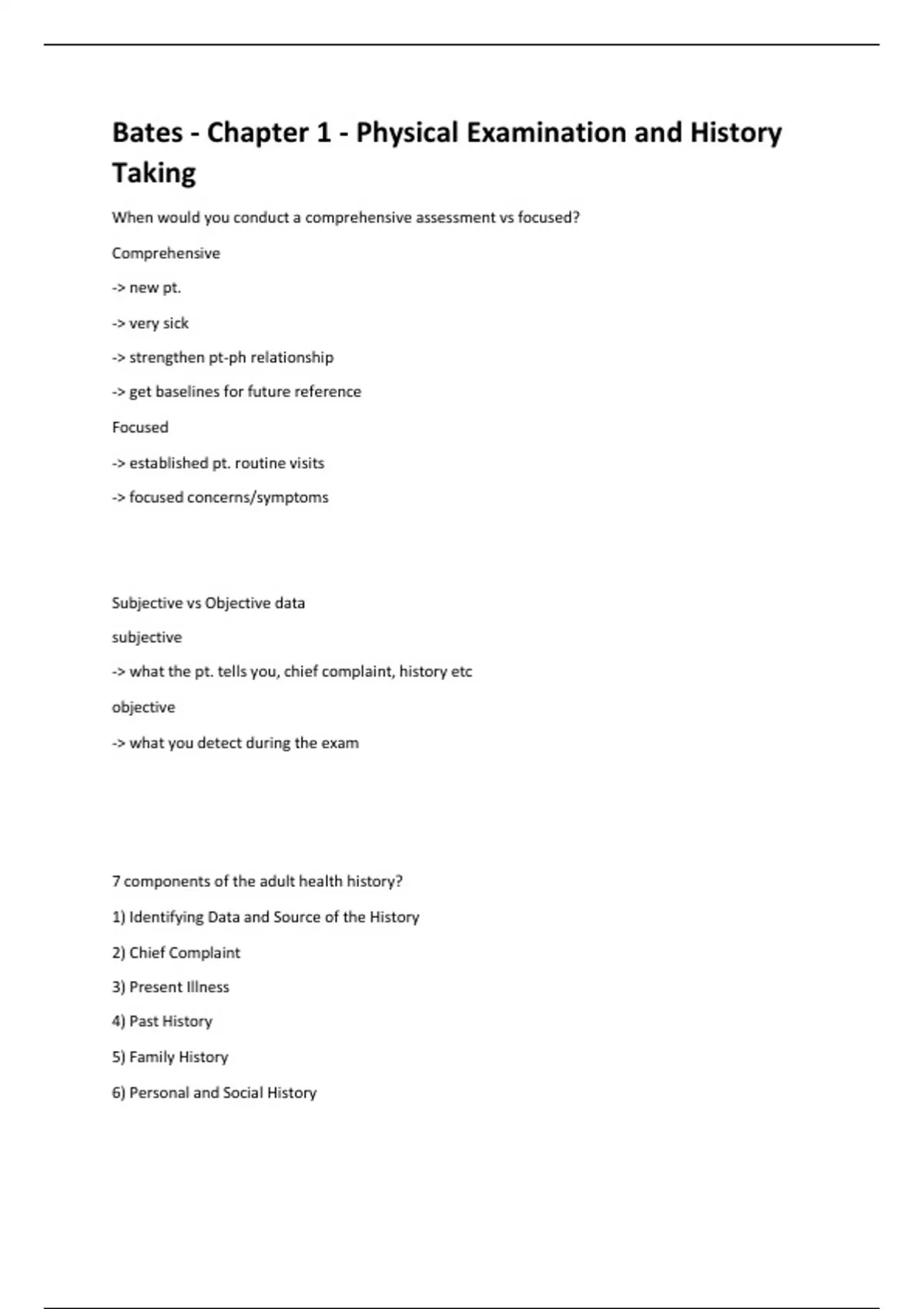 Bates - Chapter 1 - Physical Examination and History Taking Download Score An A+