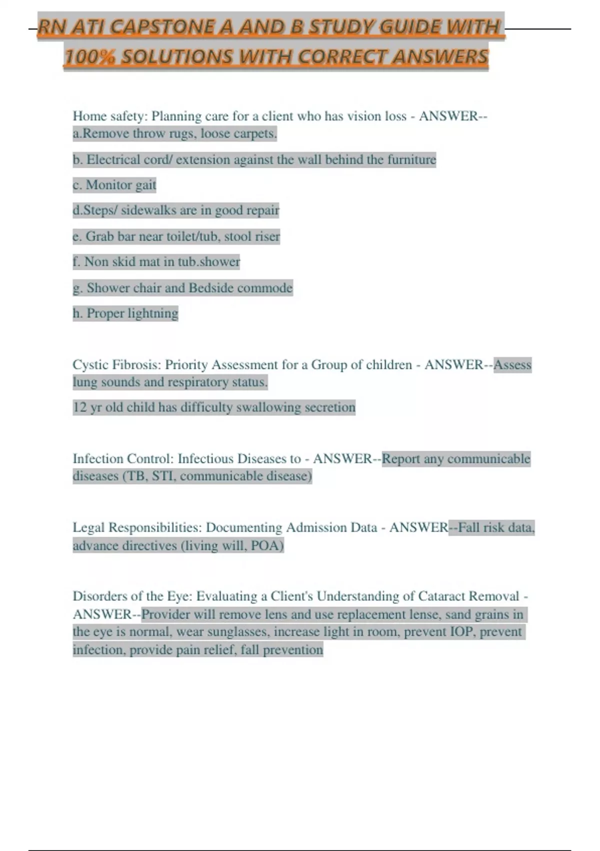 RN ATI CAPSTONE A AND B STUDY GUIDE WITH 100% SOLUTIONS WITH CORRECT ANSWERS