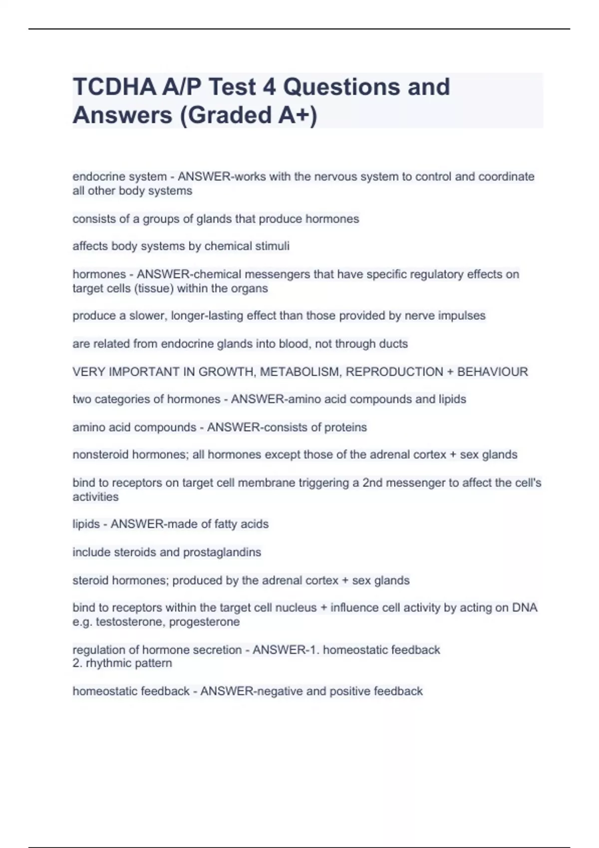 TCDHA A/P Test 4 Questions and Answers (Graded A+) TCDHA A/P Test 4 Questions and Answers (Graded A+) TCDHA A/P Test 4 Questions and Answers (Graded A+) TCDHA A/P Test 4 Questions and Answers (Graded A+) TCDHA A/P Test 4 Questions and Answers (Graded A+) TCDHA A/P Test 4 Questions and Answers (Graded A+) TCDHA A/P Test 4 Questions and Answers (Graded A+) TCDHA A/P Test 4 Questions and Answers (Graded A+) TCDHA A/P Test 4 Questions and Answers (Graded A+) TCDHA A/P Test 4 Questions and Answers (Graded A+) TCDHA A/P Test 4 Questions and Answers (Graded A+) TCDHA A/P Test 4 Questions and Answers (Graded A+) TCDHA A/P Test 4 Questions and Answers (Graded A+)