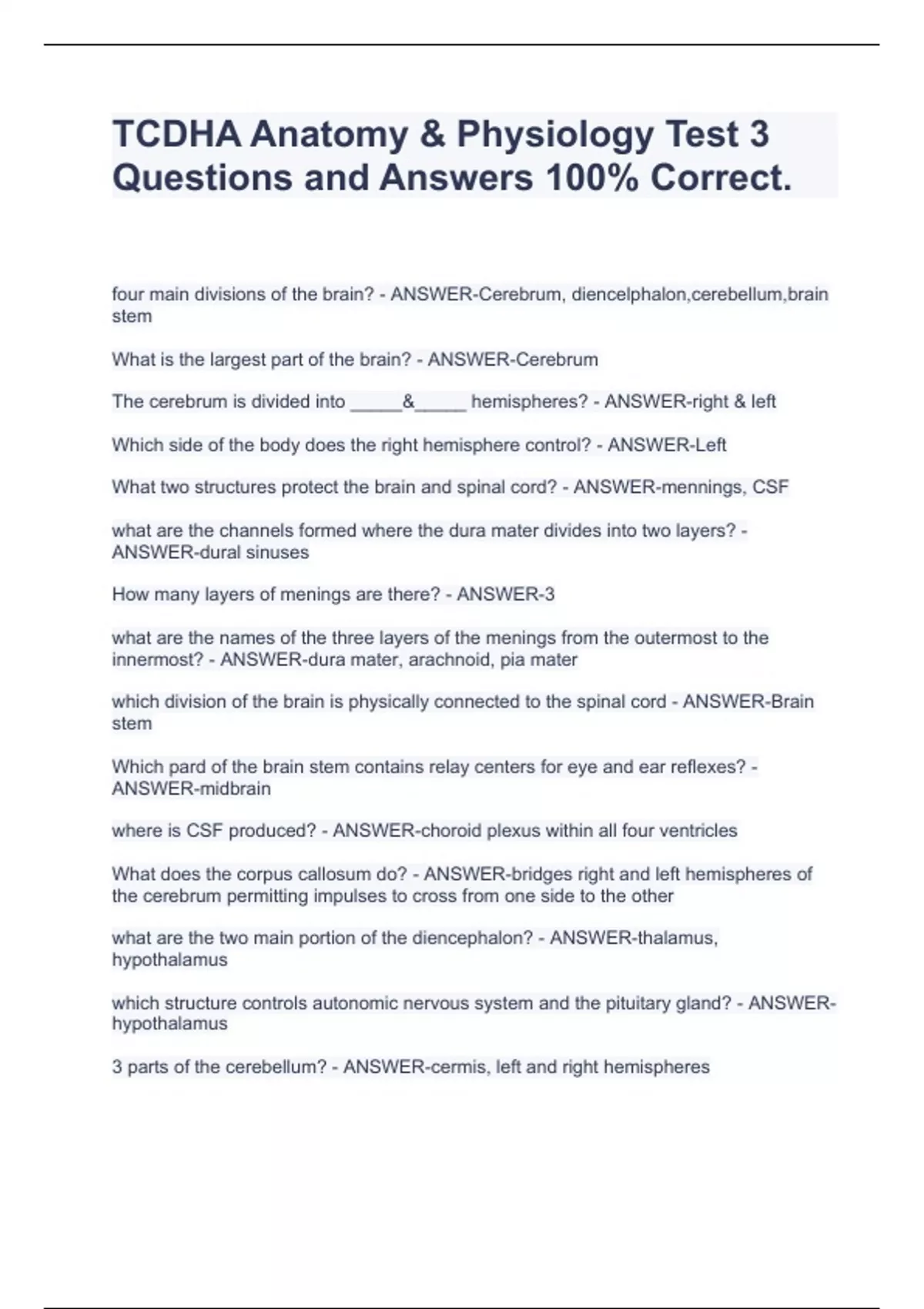 TCDHA Anatomy & Physiology Test 3 Questions and Answers 100% Correct.