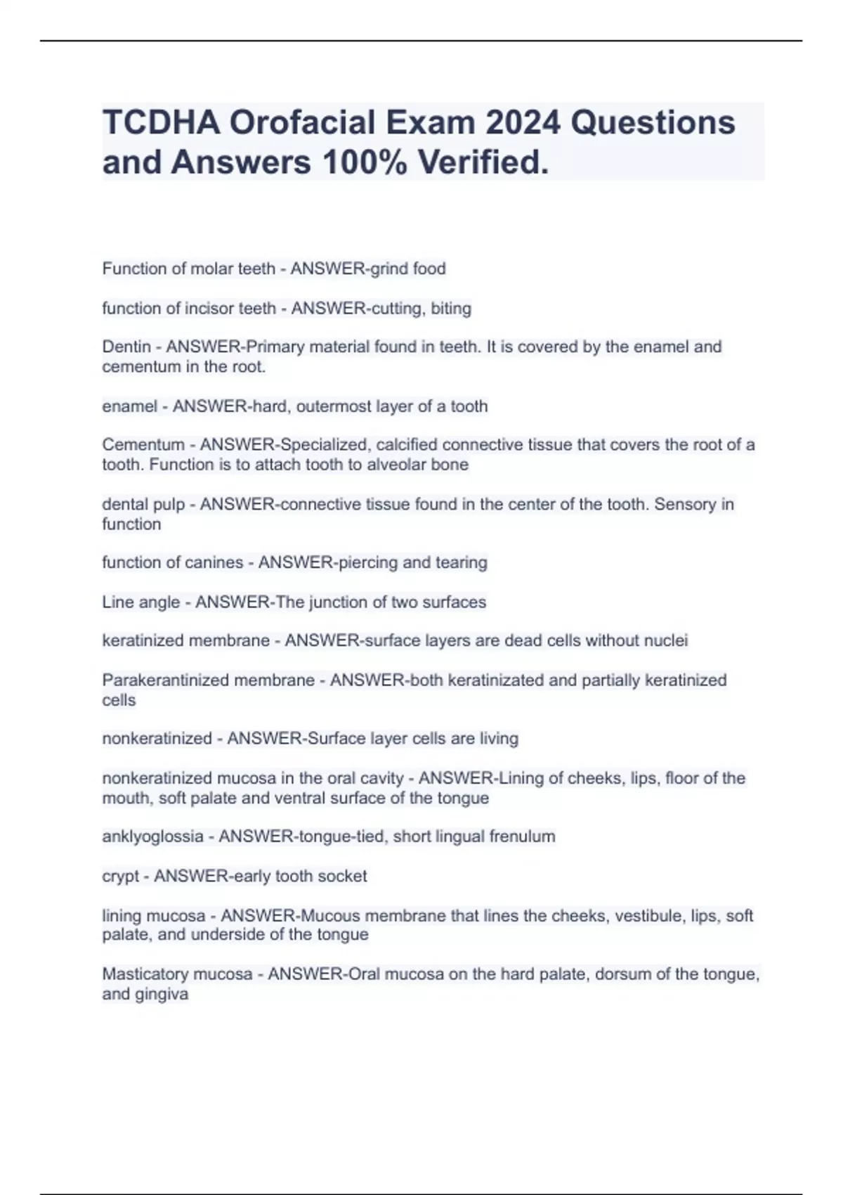 TCDHA Orofacial Exam 2024 Questions and Answers 100% Verified. TCDHA Orofacial Exam 2024 Questions and Answers 100% Verified. TCDHA Orofacial Exam 2024 Questions and Answers 100% Verified. TCDHA Orofacial Exam 2024 Questions and Answers 100% Verified. TCDHA Orofacial Exam 2024 Questions and Answers 100% Verified. TCDHA Orofacial Exam 2024 Questions and Answers 100% Verified. TCDHA Orofacial Exam 2024 Questions and Answers 100% Verified. TCDHA Orofacial Exam 2024 Questions and Answers 100% Verified. TCDHA Orofacial Exam 2024 Questions and Answers 100% Verified. TCDHA Orofacial Exam 2024 Questions and Answers 100% Verified. TCDHA Orofacial Exam 2024 Questions and Answers 100% Verified. TCDHA Orofacial Exam 2024 Questions and Answers 100% Verified. TCDHA Orofacial Exam 2024 Questions and Answers 100% Verified.