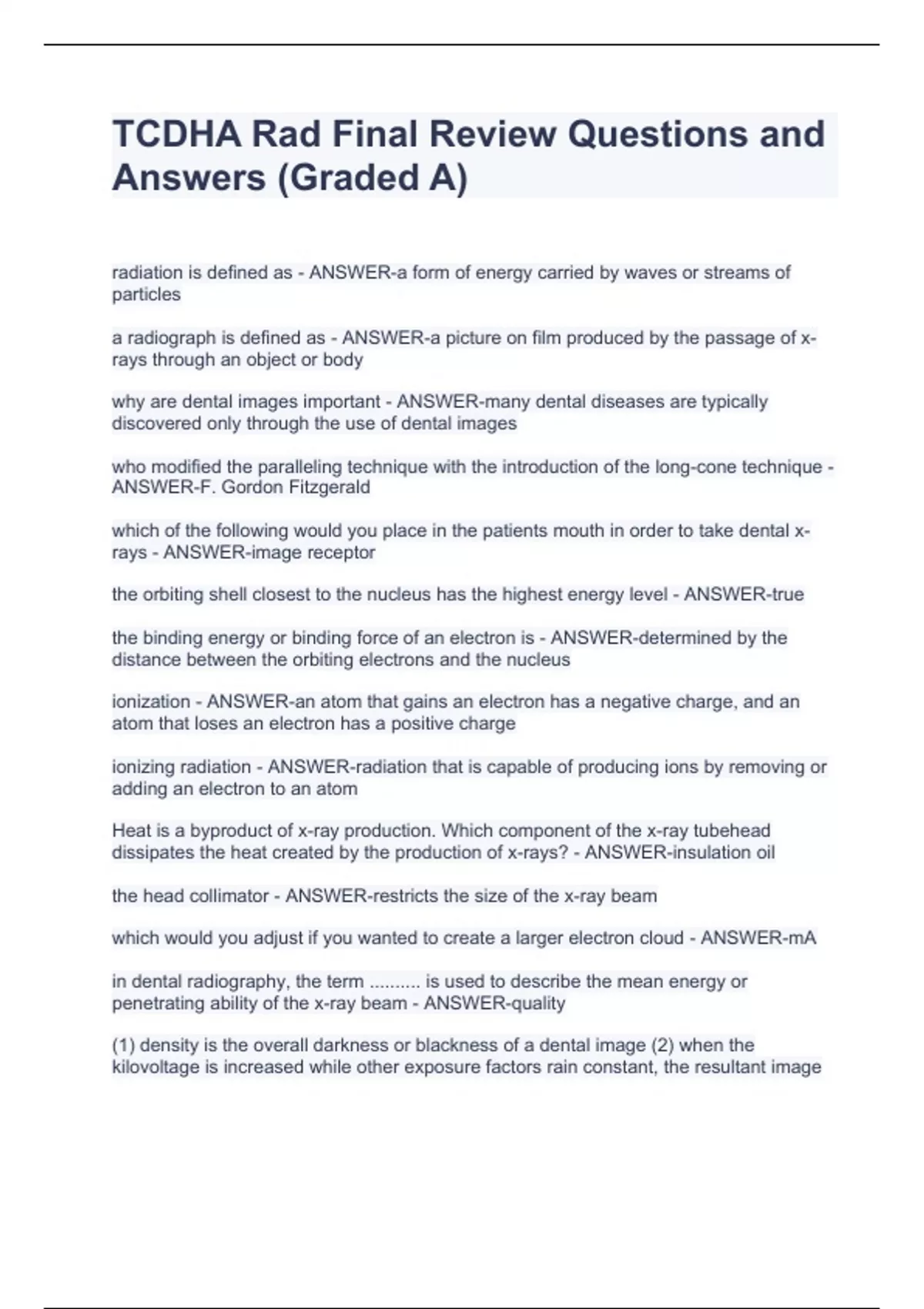 TCDHA Rad Final Review Questions and Answers (Graded A)