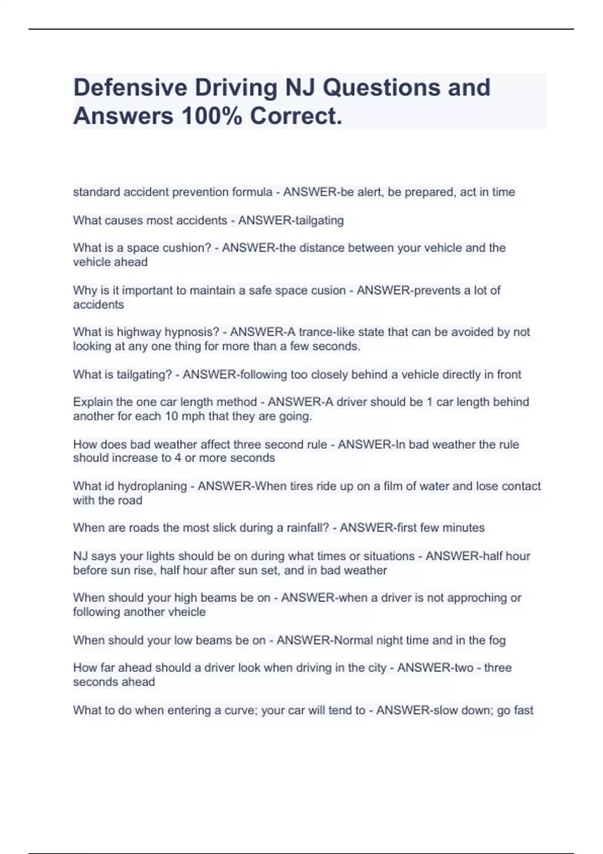 Defensive Driving NJ Questions and Answers 100% Correct.