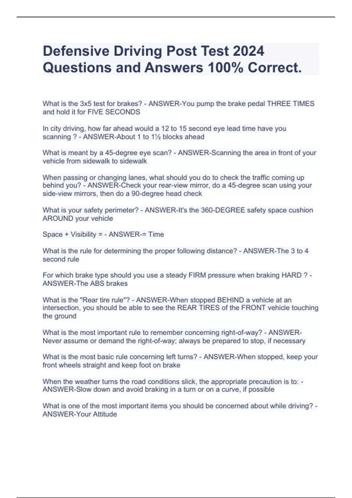 Defensive Driving Post Test 2024 Questions and Answers 100% Correct.
