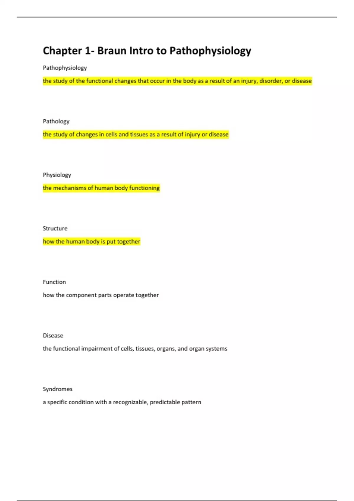Chapter 1- Braun Intro to Pathophysiology Download To Score An A+