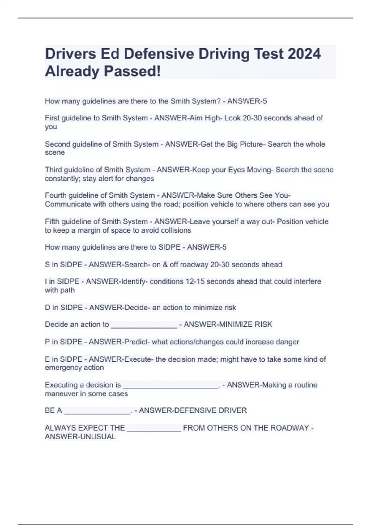 Drivers Ed Defensive Driving Test 2024 Already Passed!