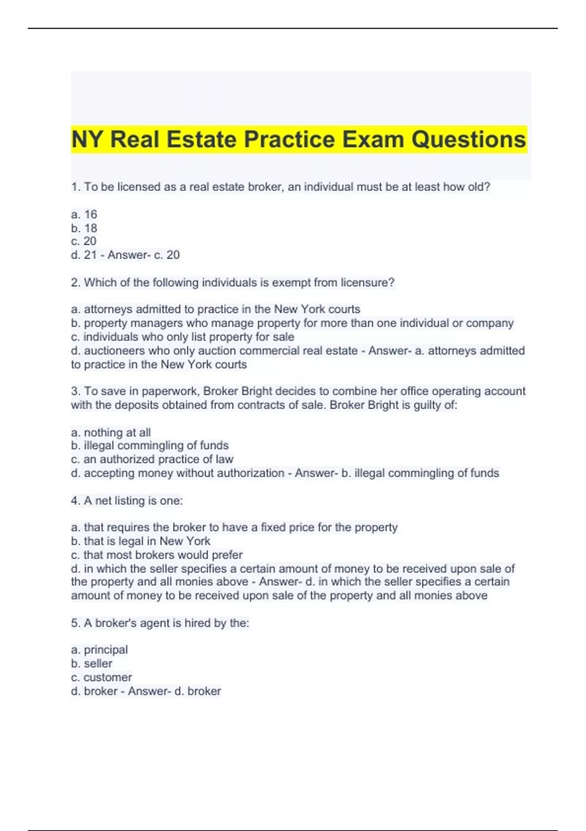 NY Real Estate Practice Exam Questions with 100% correct Answers