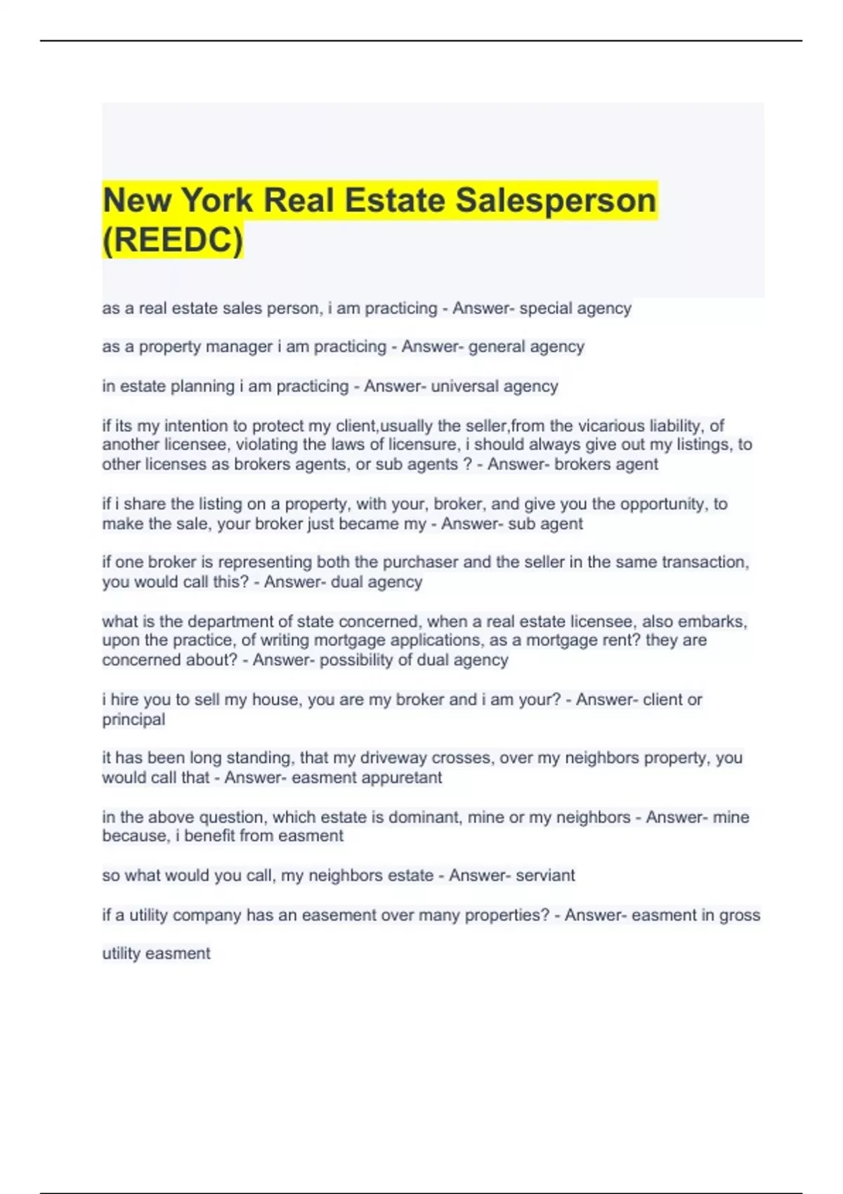 New York Real Estate Salesperson (REEDC) Exam Questions with correct Answers